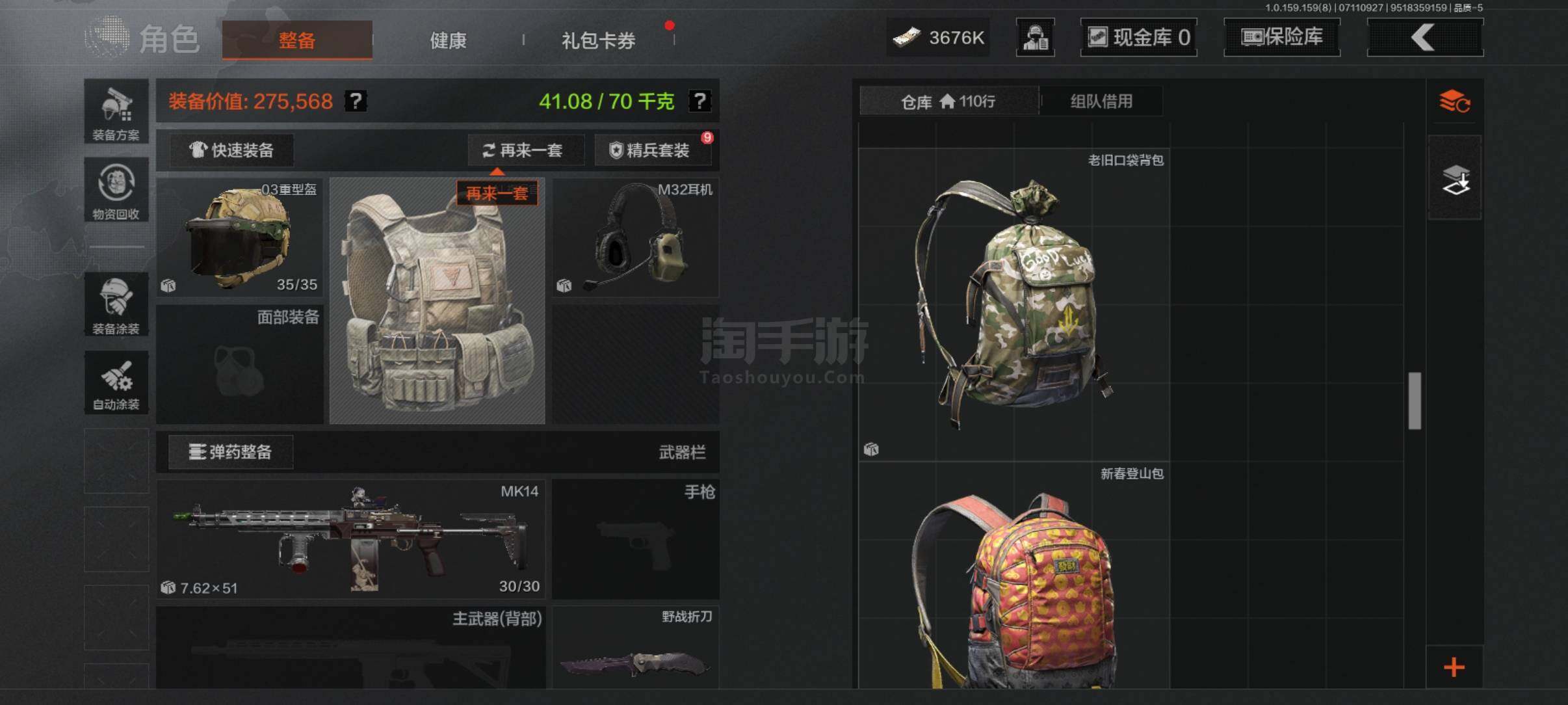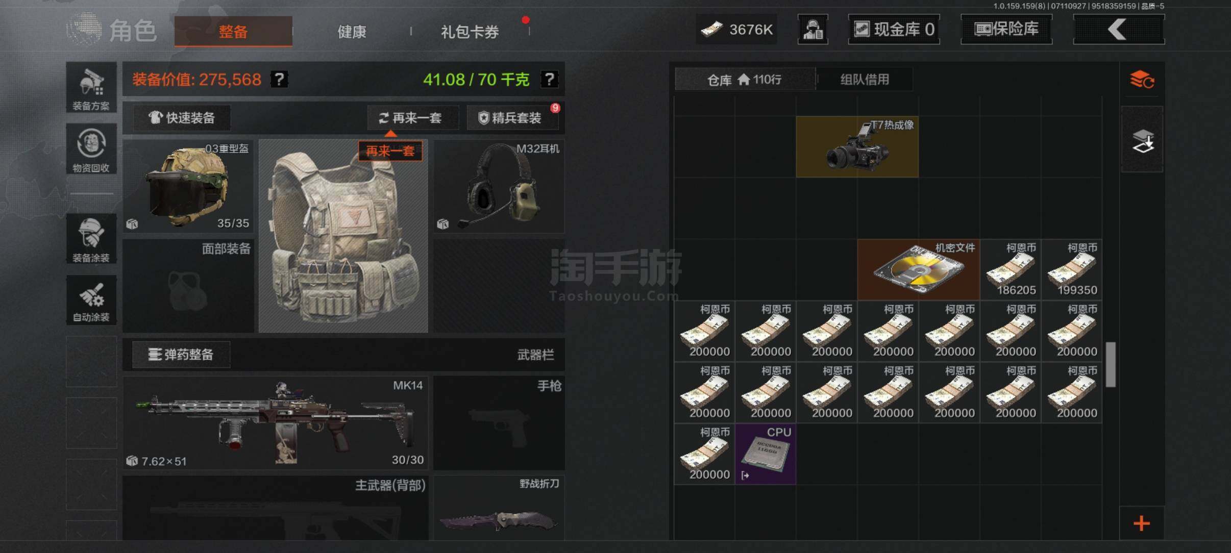 暗区突围【安卓QQ】安Q可二次4刀皮1衣服1枪皮仓库价值9.3M币3676K 急袭弯刀,野战折刀,