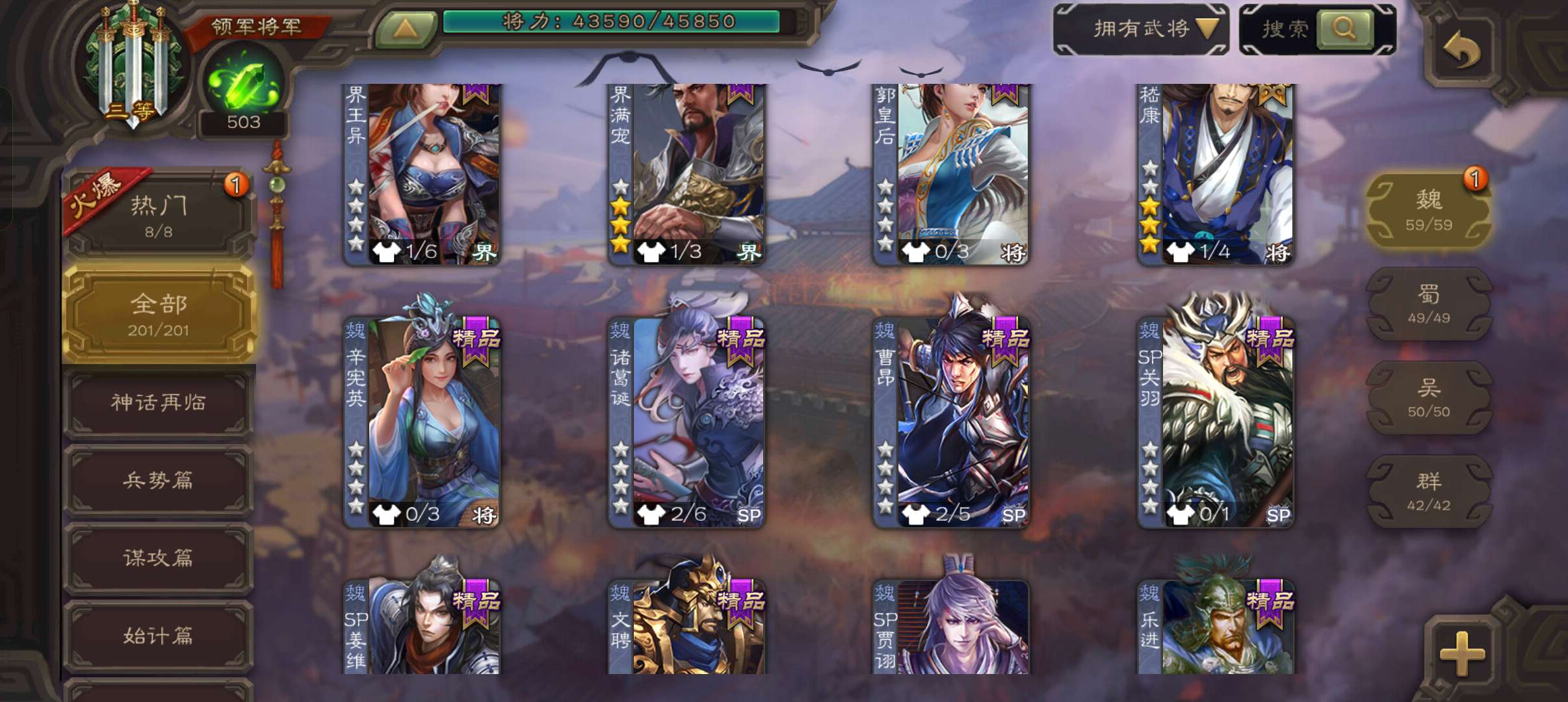 10史诗领军,玉龙星魏延玉龙回廊动白马沙摩柯花鬘曹纯嵇康杨修左慈贺齐程昱,双神动张春华界满宠201将
