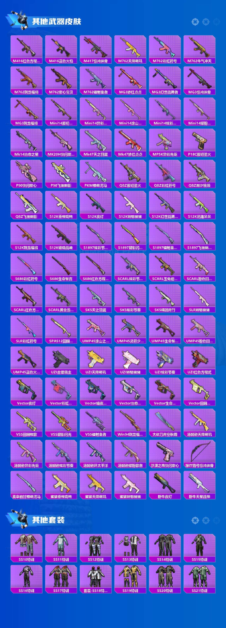 【优质套装】:粉装-暗夜玫瑰,粉装-齐天大圣,粉装-紫电风暴,角色-呆萌星弥,粉装-未来歌姬