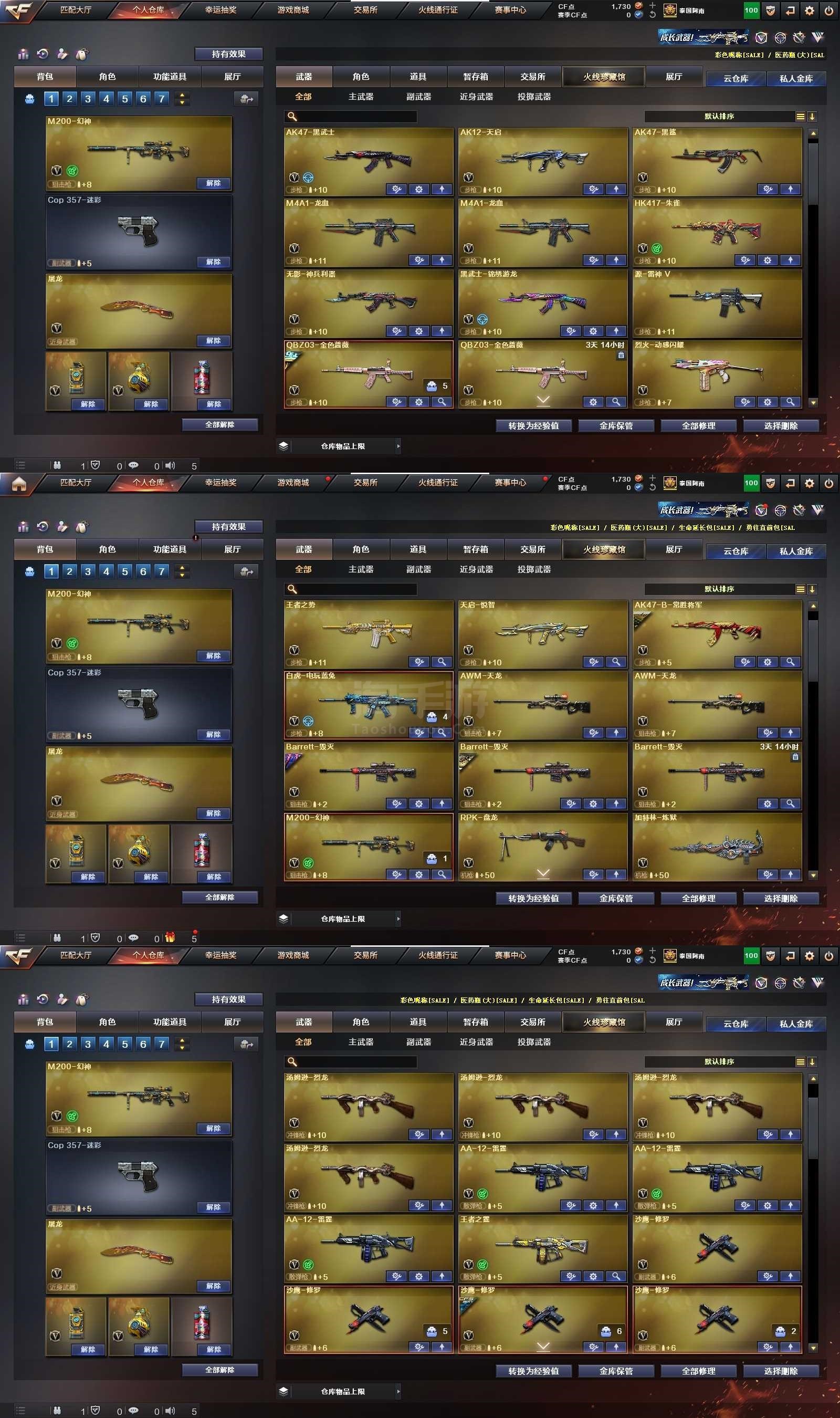 1984630_安徽/东部/包实名/75V11王者3炫金【主武器类型】 M200-幻神 星神-炽天使 USP-神工天巧 白虎电玩蓝兔 HK417-朱雀 Barrett-毁灭 (耀金+音效卡) M4A1-雷神 (冠军之魄+赵云) QBZ03-金色蔷薇 (冠军之薇+音效卡) 王者之势觉醒版 M4A1-黑骑士 (马超+音效卡) M4A1-千变 M4A1-龙血 *2 AK47-火麒麟 *6 无影神兵利器