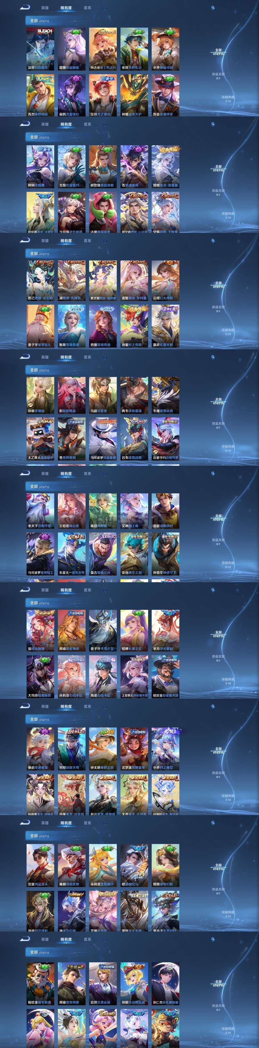 v10,女号475个皮肤王昭君小乔海诺猪八戒李信甄姬全皮甄姬只差一个