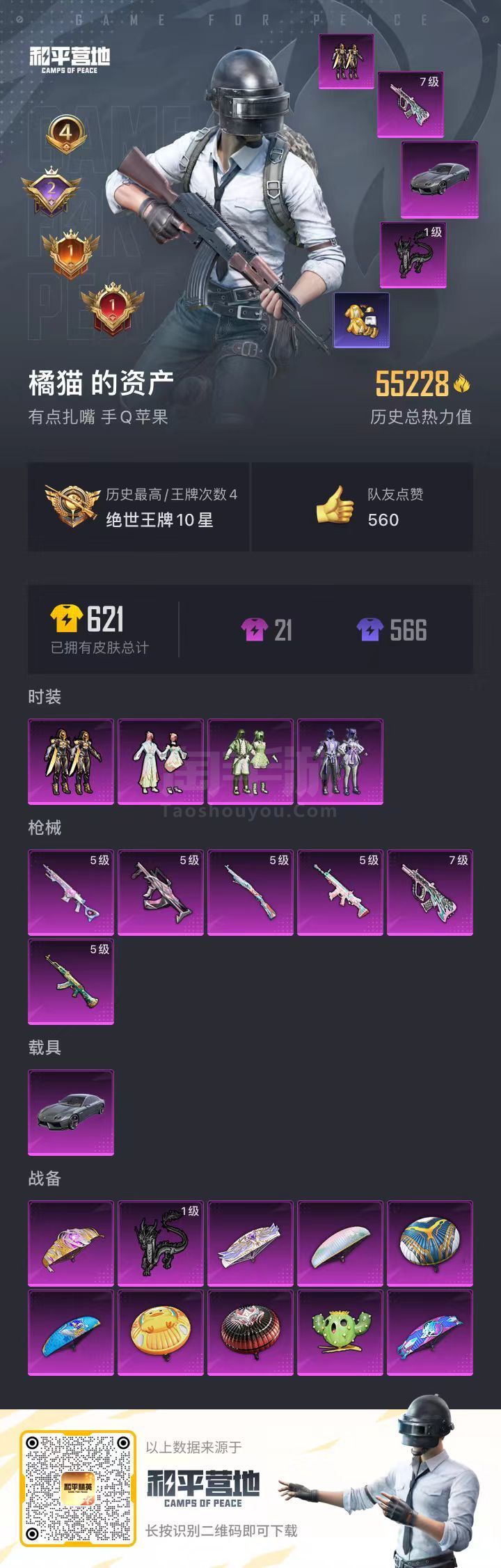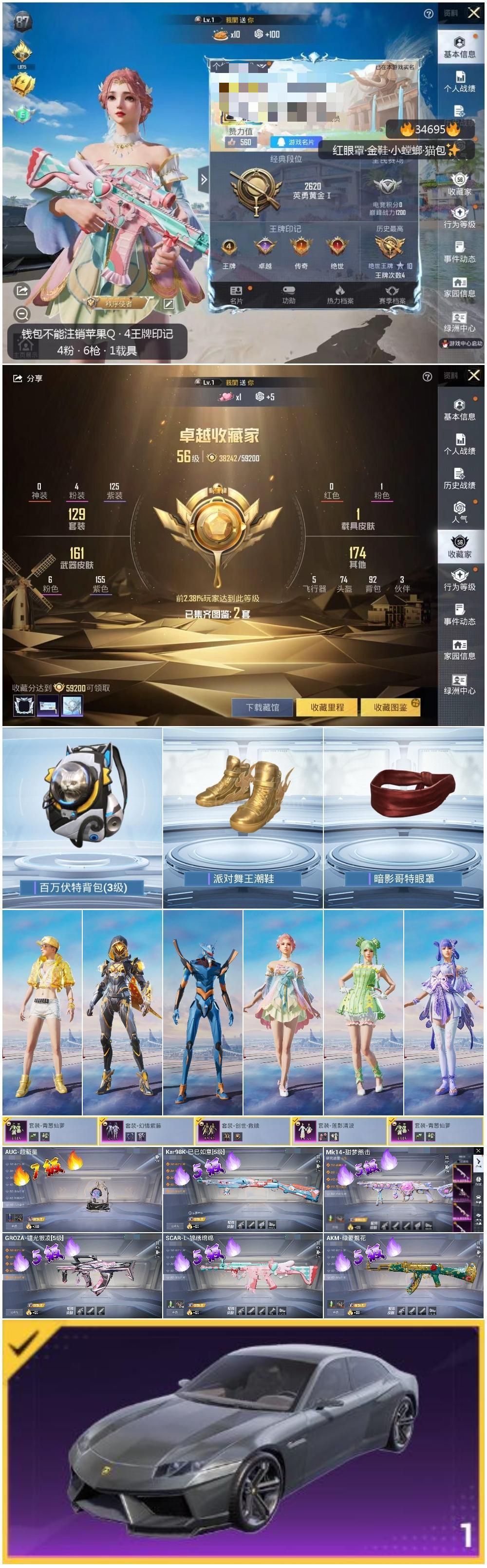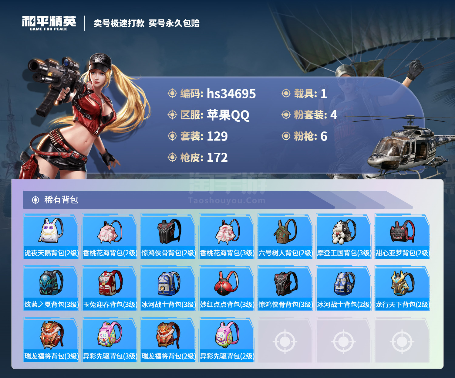 hs34695 苹果手Q-4王牌印记-4粉装-6特效枪-1载具-55268热力值-129套装-172