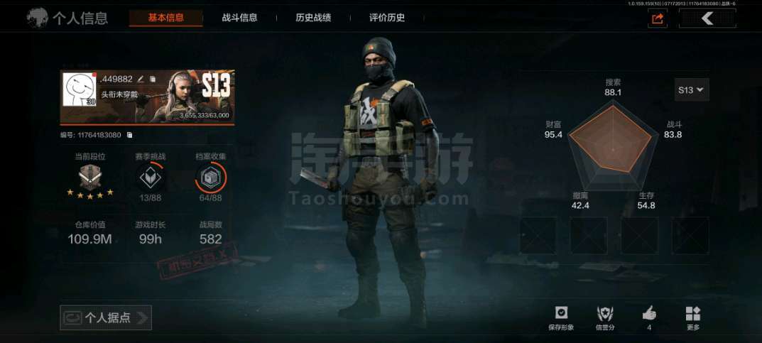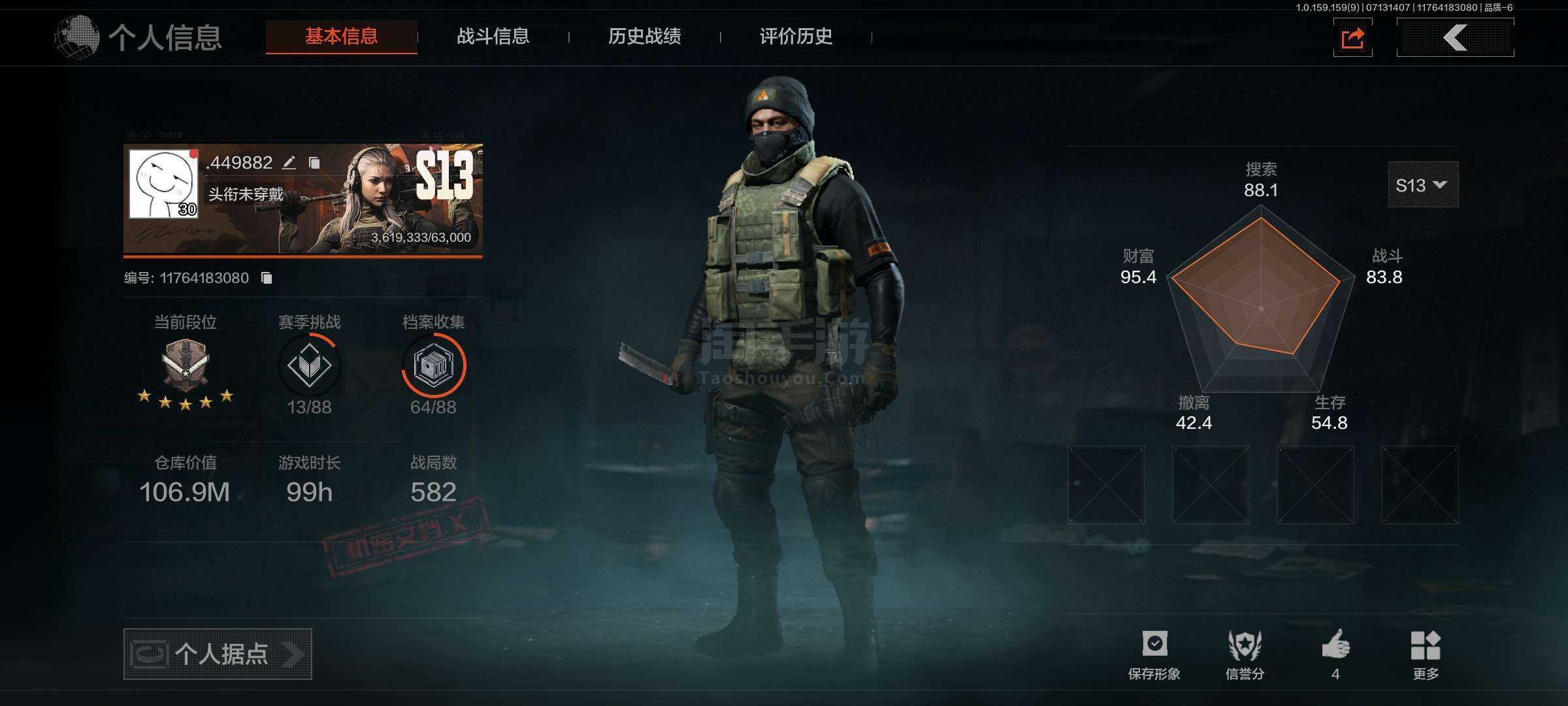 107m仓库价值,没打过多少把,爆率很高,赛季一百来把就出机密了