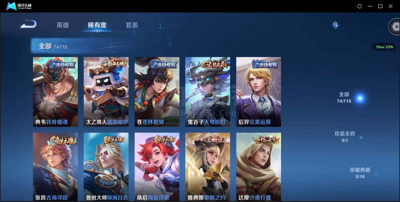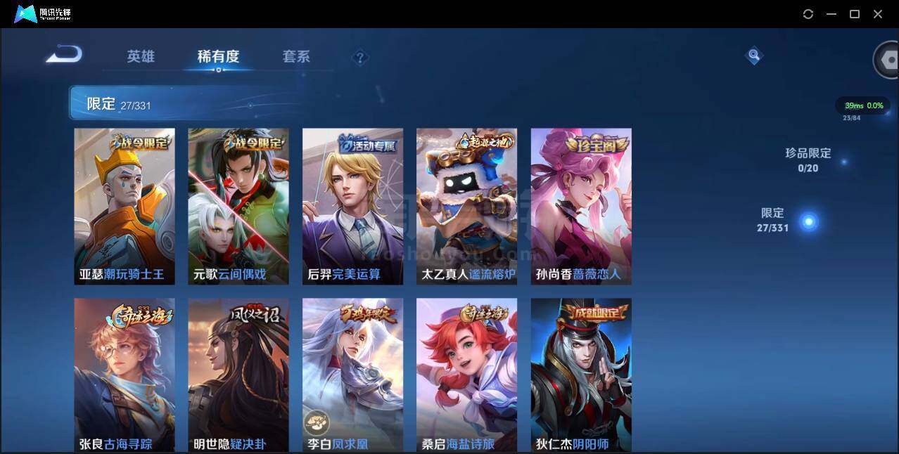 贵族等级: V5 英雄数: 101 皮肤数: 74 限定皮: 李小龙,凤求凰