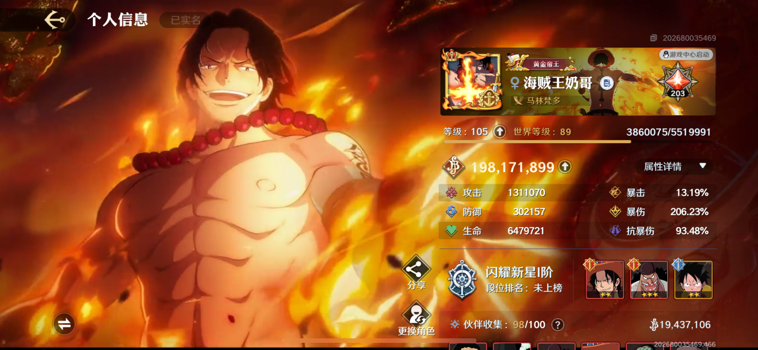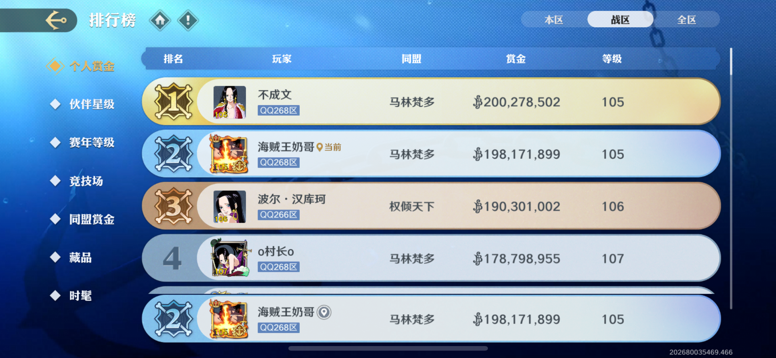苹果Q新区268断档战区前二五星红卡同盟第一氪5.2W