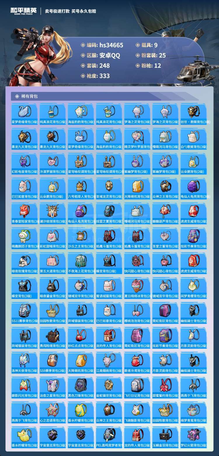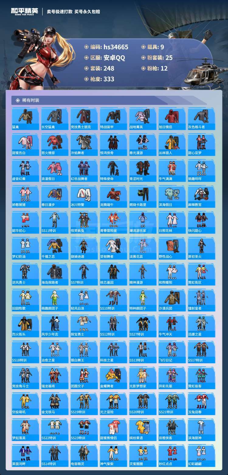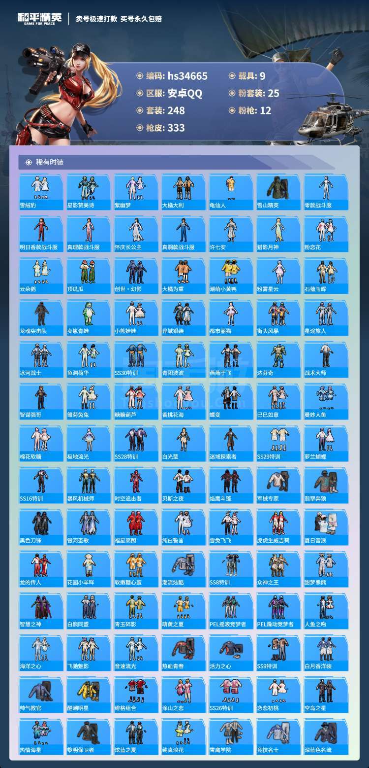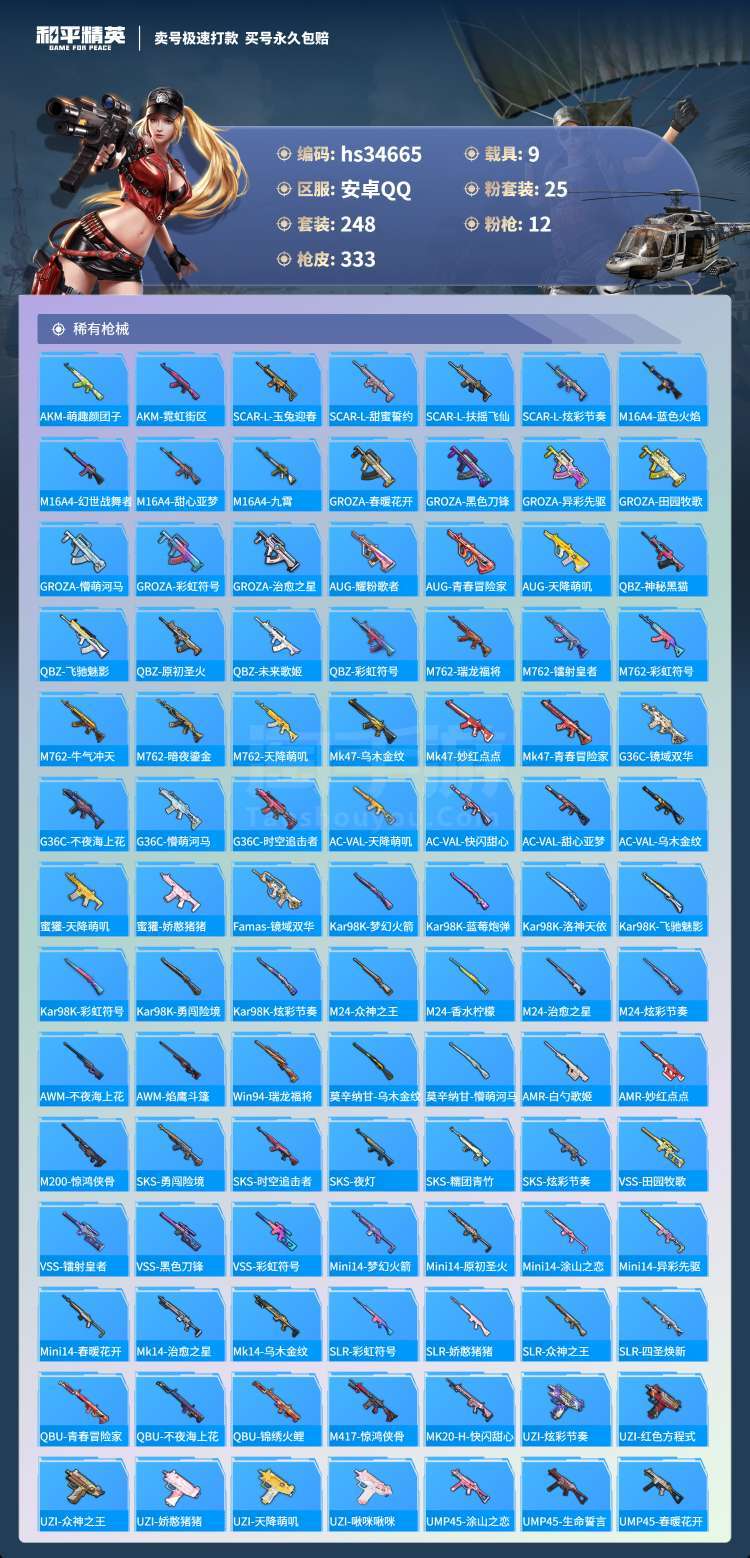 hs34665 安卓手Q-26王牌印记-25粉装-12特效枪-9载具-144832热力值-248套装