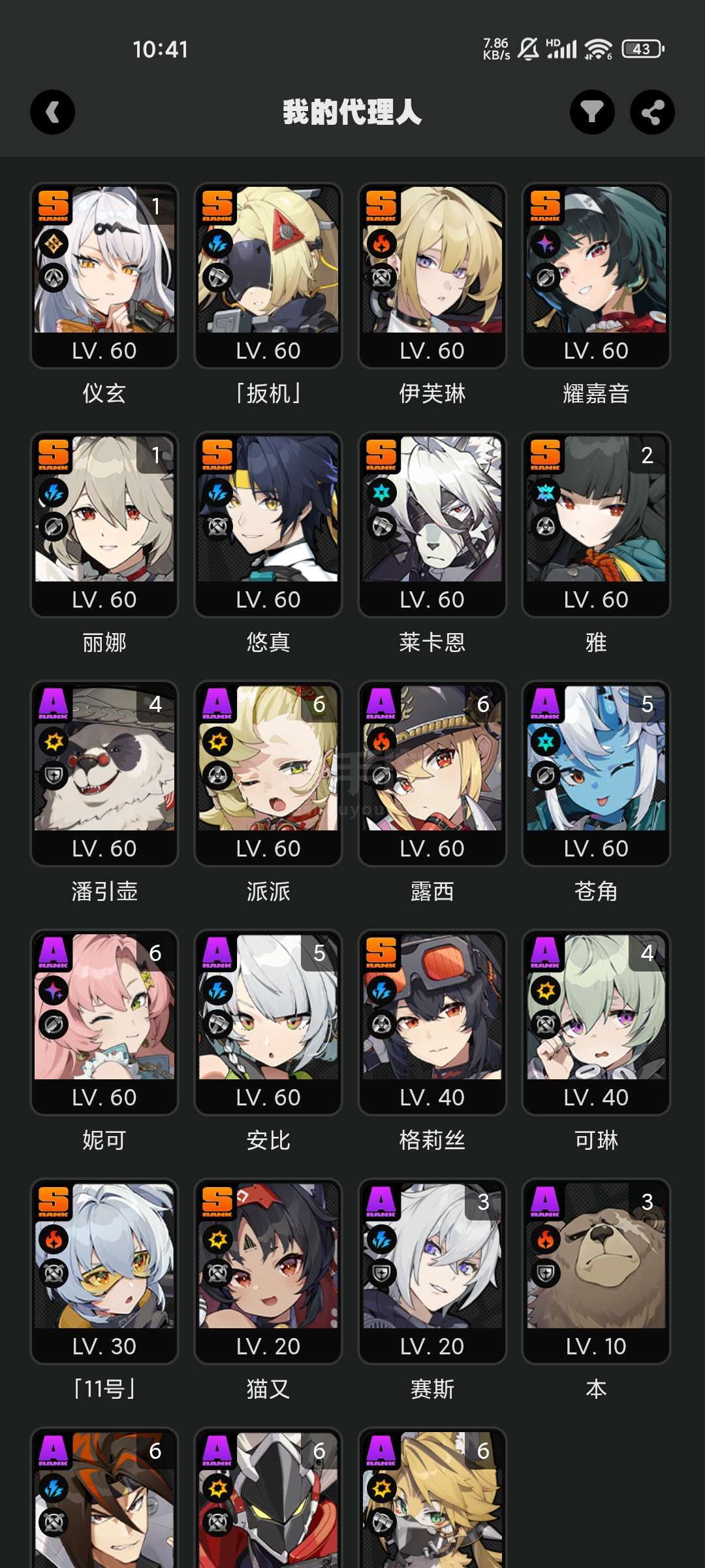 左轮布,插头布,巴特勒,鲨牙布,格列佛探员,狮耶,仪玄,扳机,零号·安比,耀嘉音,浅羽悠真,莱卡恩,丽娜,珂蕾妲,格莉丝,猫又,青溟笼舍,索魂影眸,玲珑妆匣,硫磺石,啜泣摇篮,嵌合编译器,满命扳机,1命莱卡恩,1命丽娜,0命仪玄,0命零号·安比,0命耀嘉音,0命浅羽悠真,0命珂蕾妲,0命格莉丝,0命猫又,精1青溟笼舍,精1索魂影眸,精1玲珑妆匣