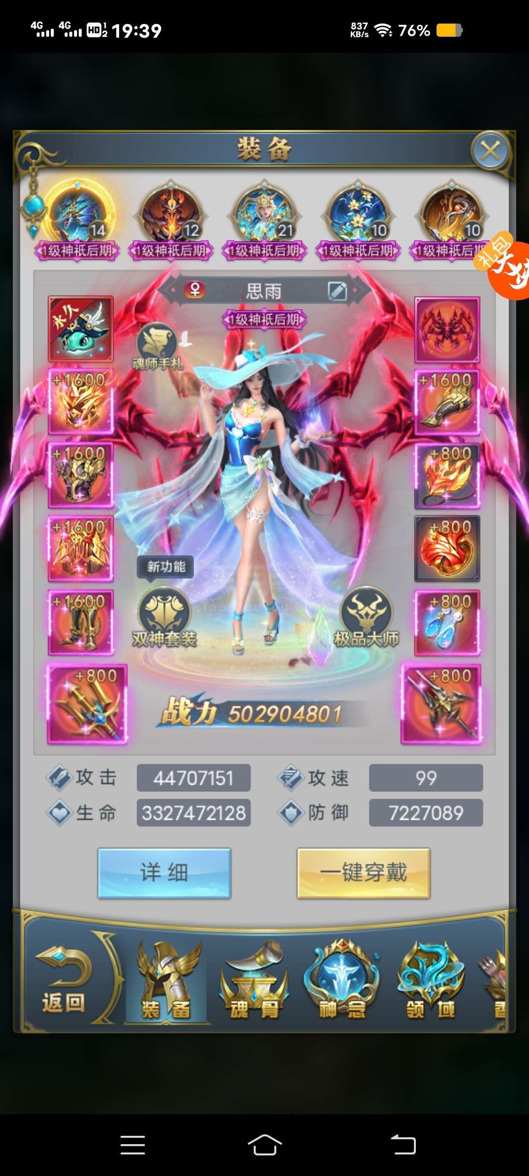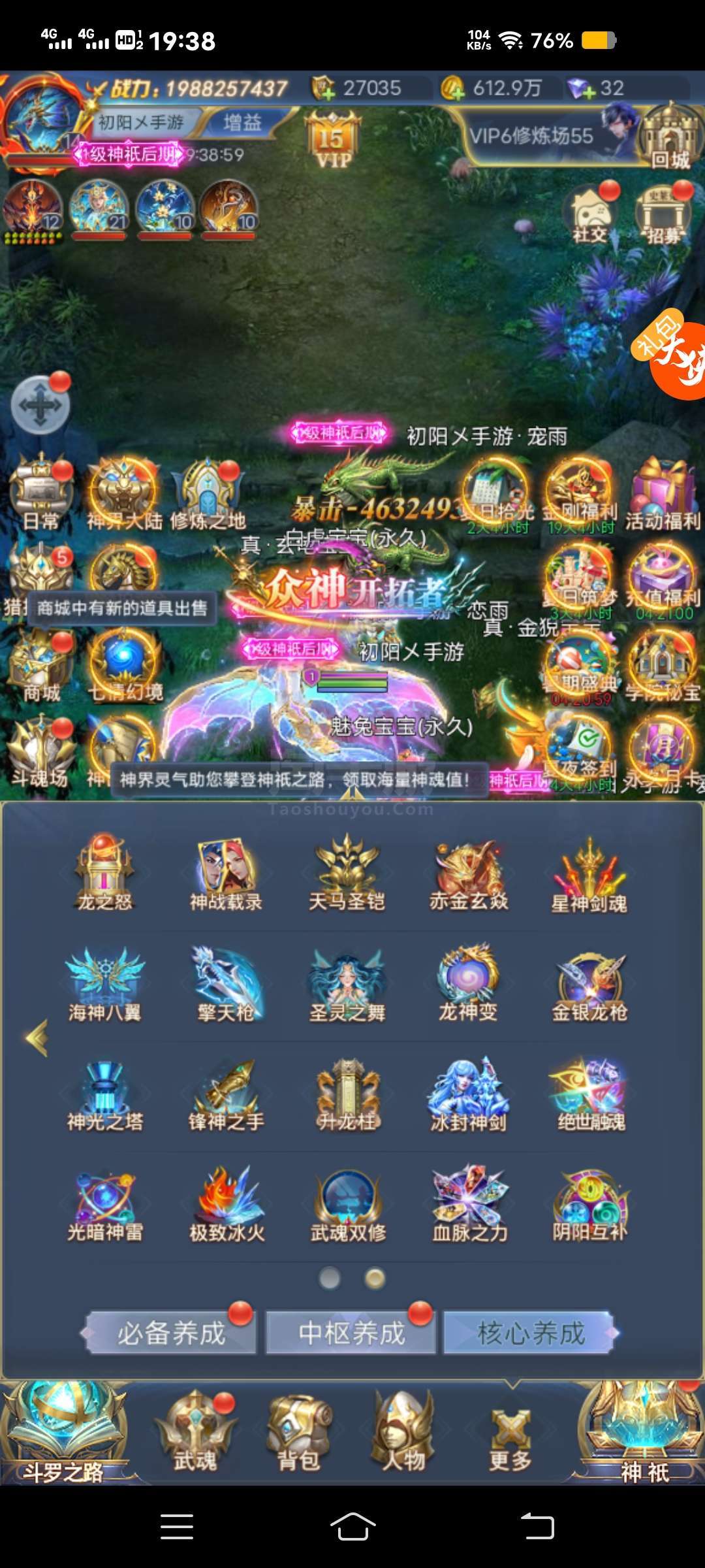 手游大侠昊天可换绑,三套骨三套龙魂,28百万,18红凶兽,有永久月卡有新武魂剑道尘心转换卡
