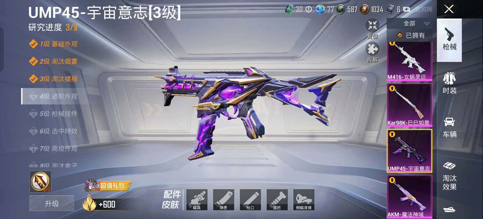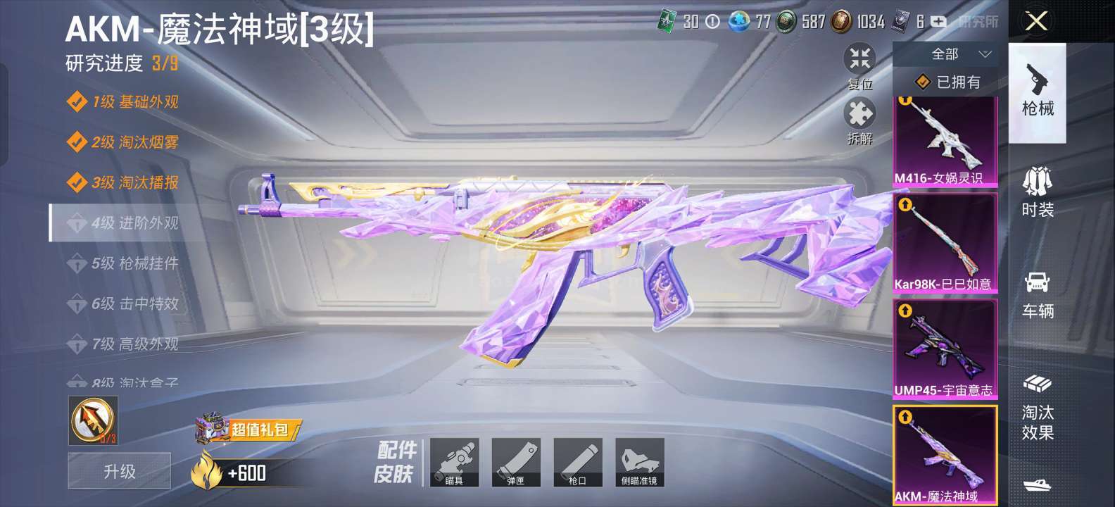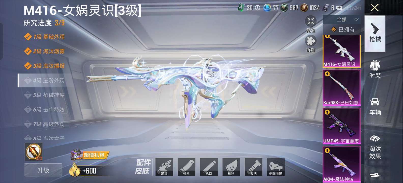 四粉装有螳螂火箭少女3把极品九级升级枪暂时改不了二次