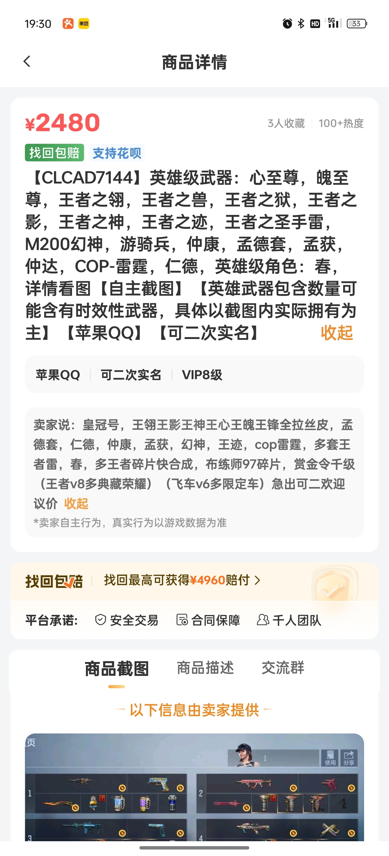 通过App,与卖家商议价格及保险,并向卖家索要账号最新截图,确认后下单购买。