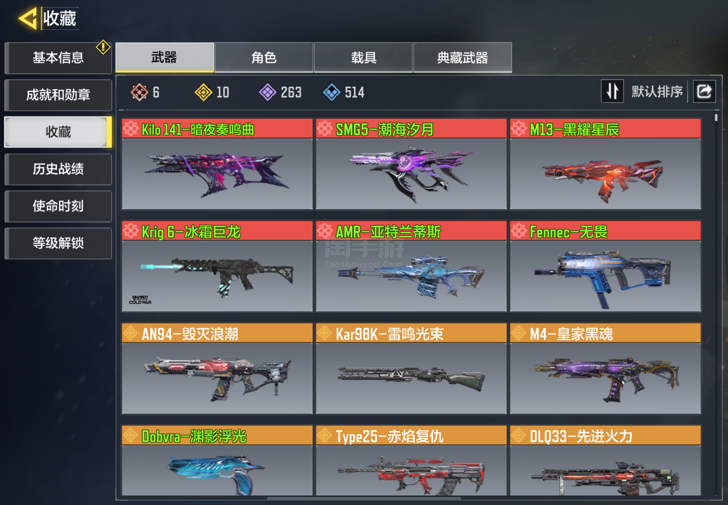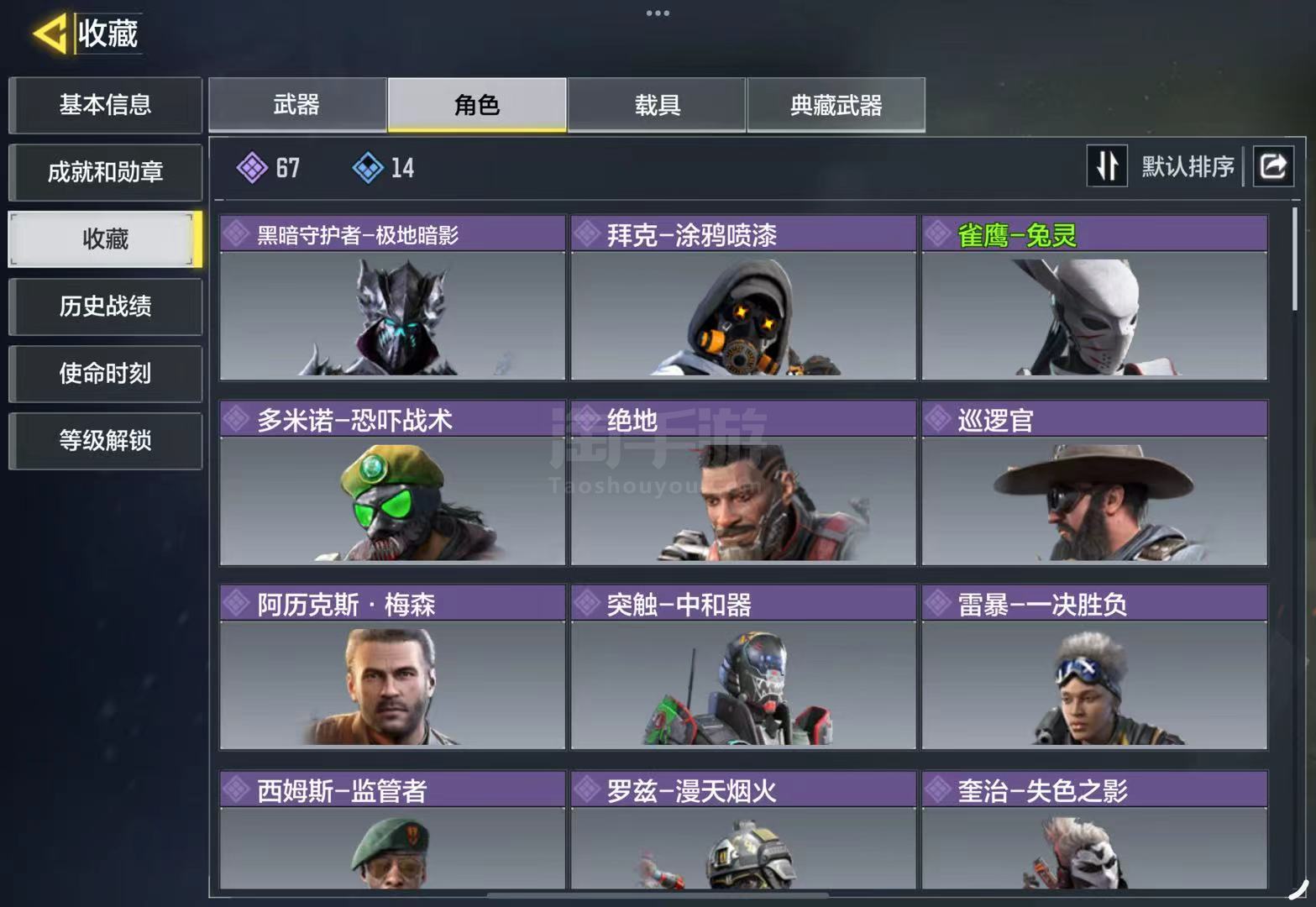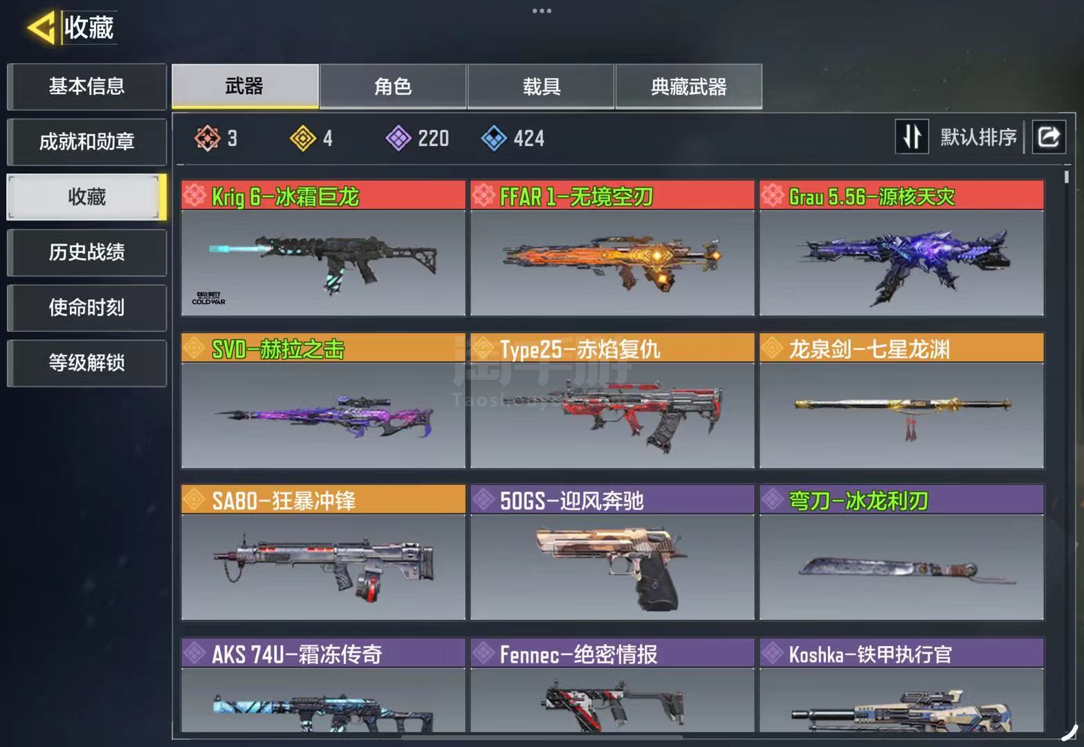 苹果QQ 有很多热门角色热门枪皮冰龙等一系列枪皮,也有很多高质量紫皮,高质量人物投掷物皮肤也不少 久了不想玩,可小刀。