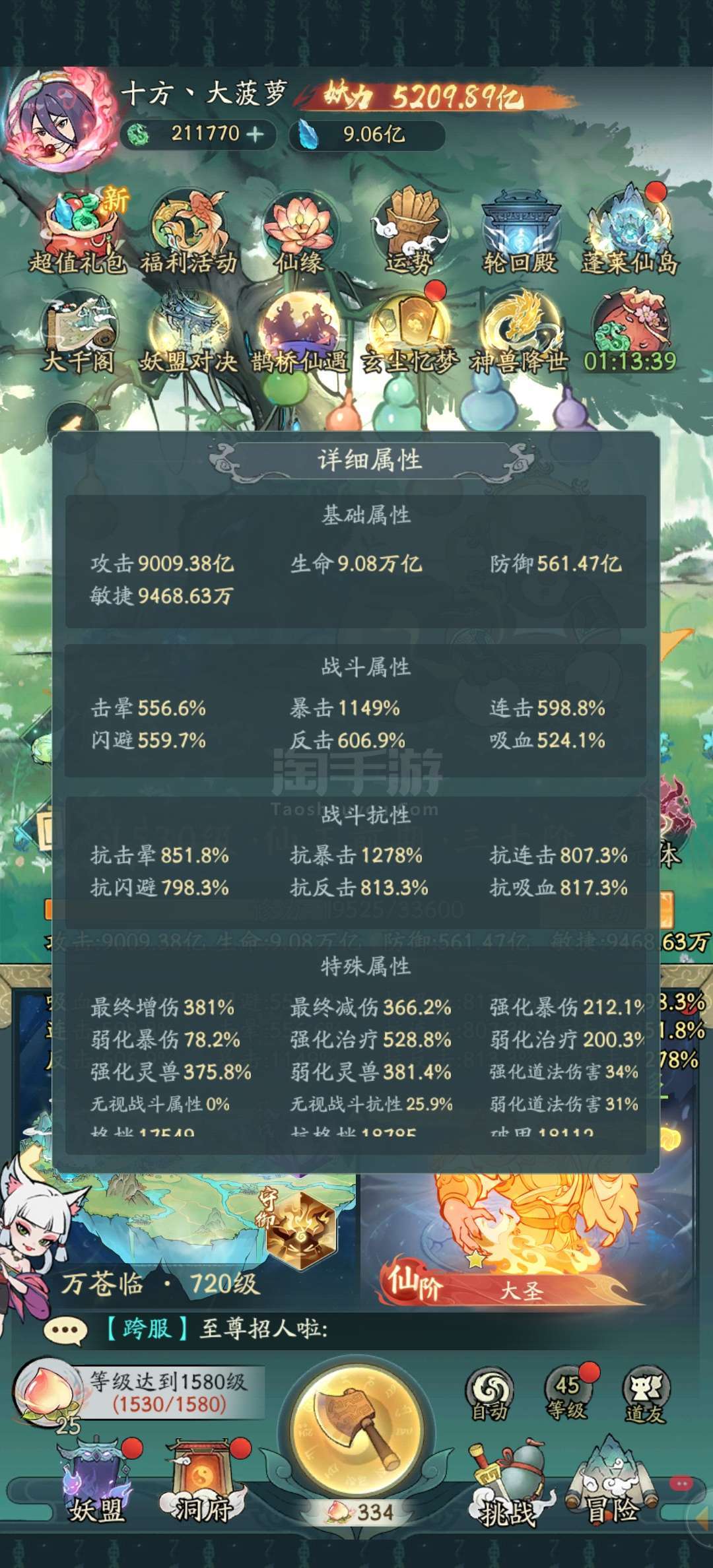 安卓官方 剩500机缘,441山头第四巅峰战力,塑魂15+12,10大皮,380增伤,法宝32+5