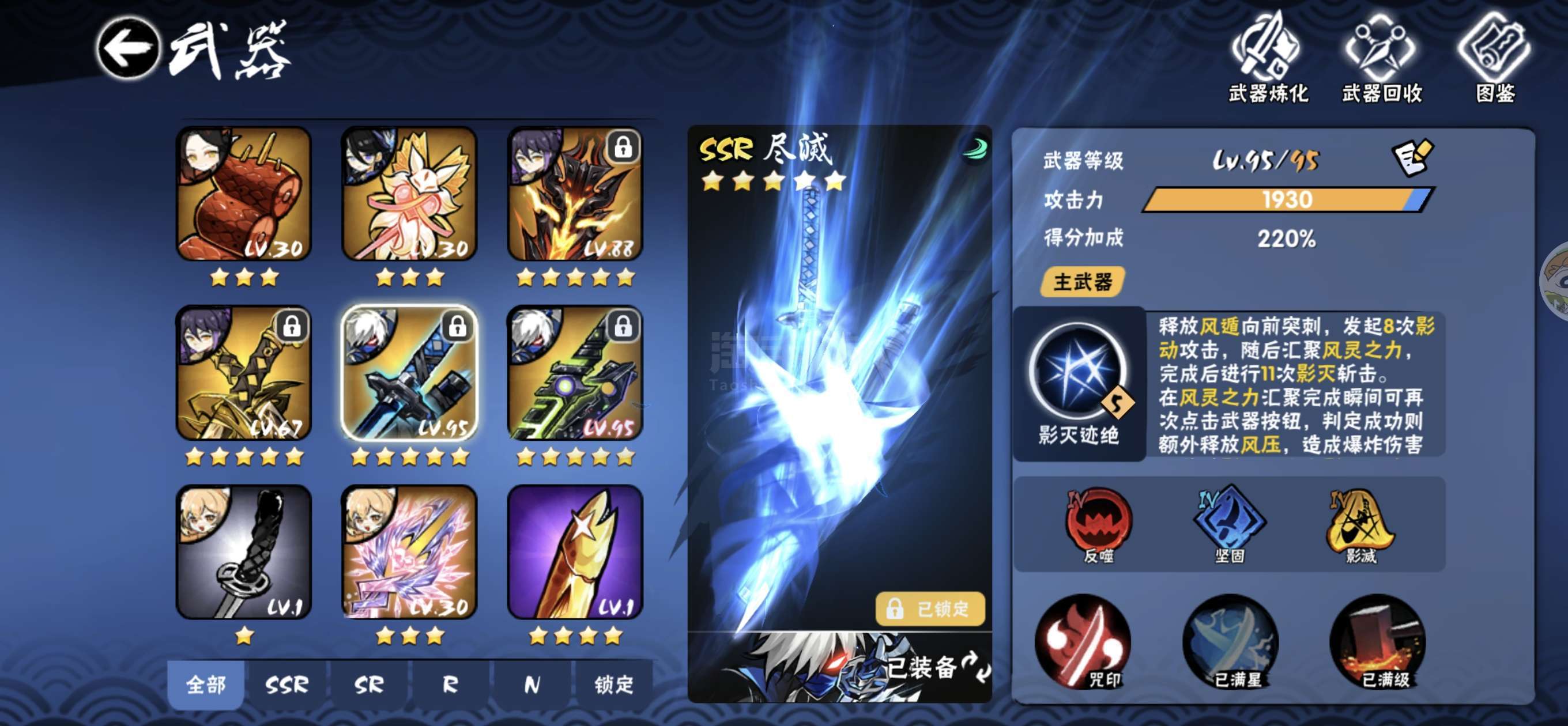 忍者必须死3-安卓官方 马上211水鹤,有533隼白,95蛇刀 尽滅 破云 双刀 巨阙还有超多皮肤
