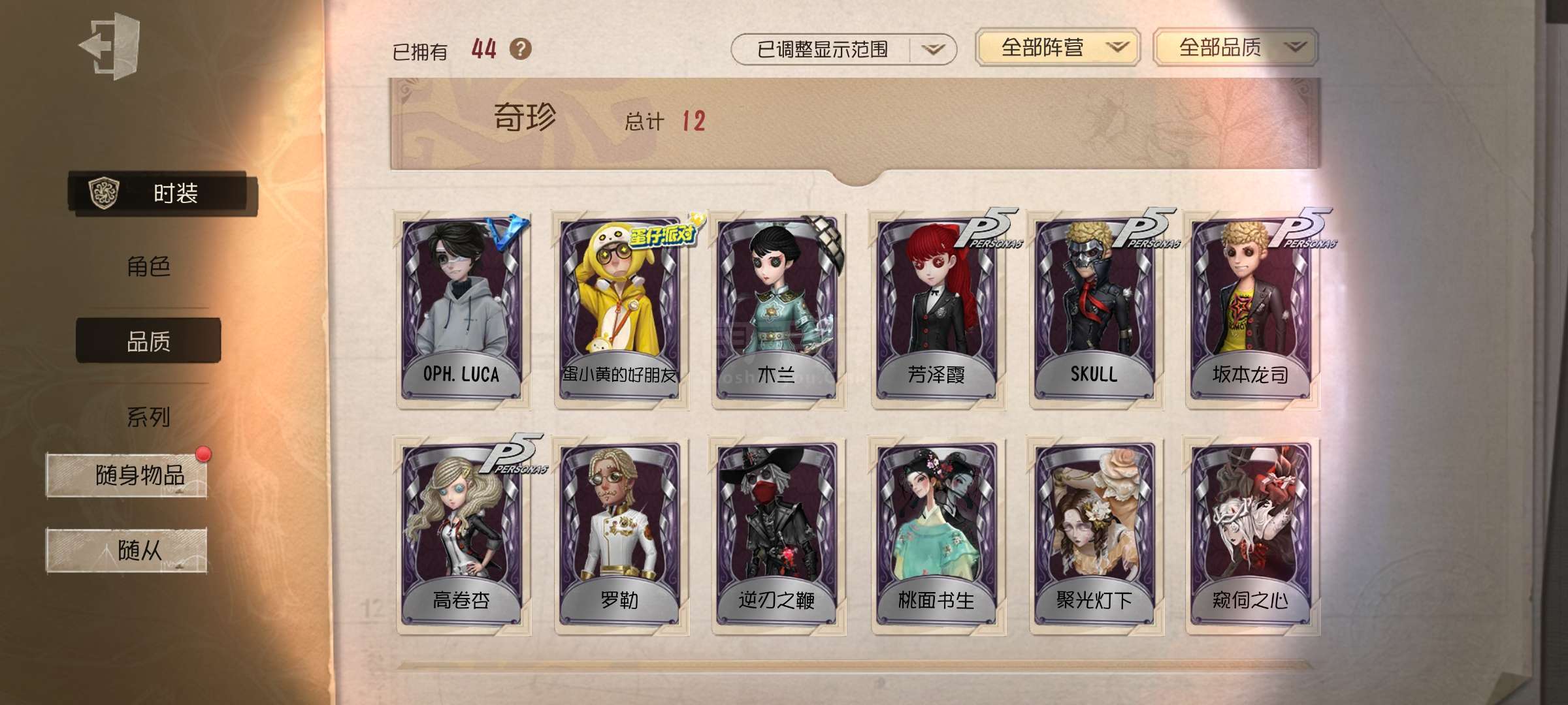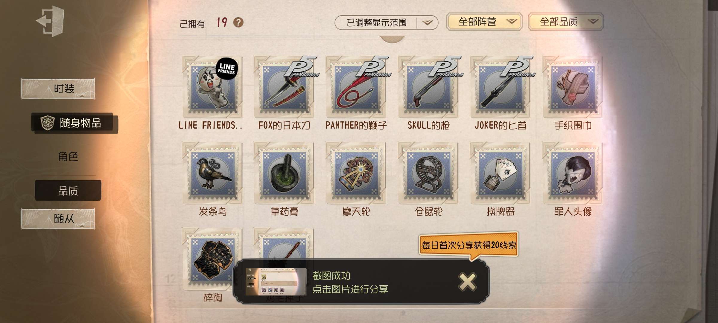 随身物品: