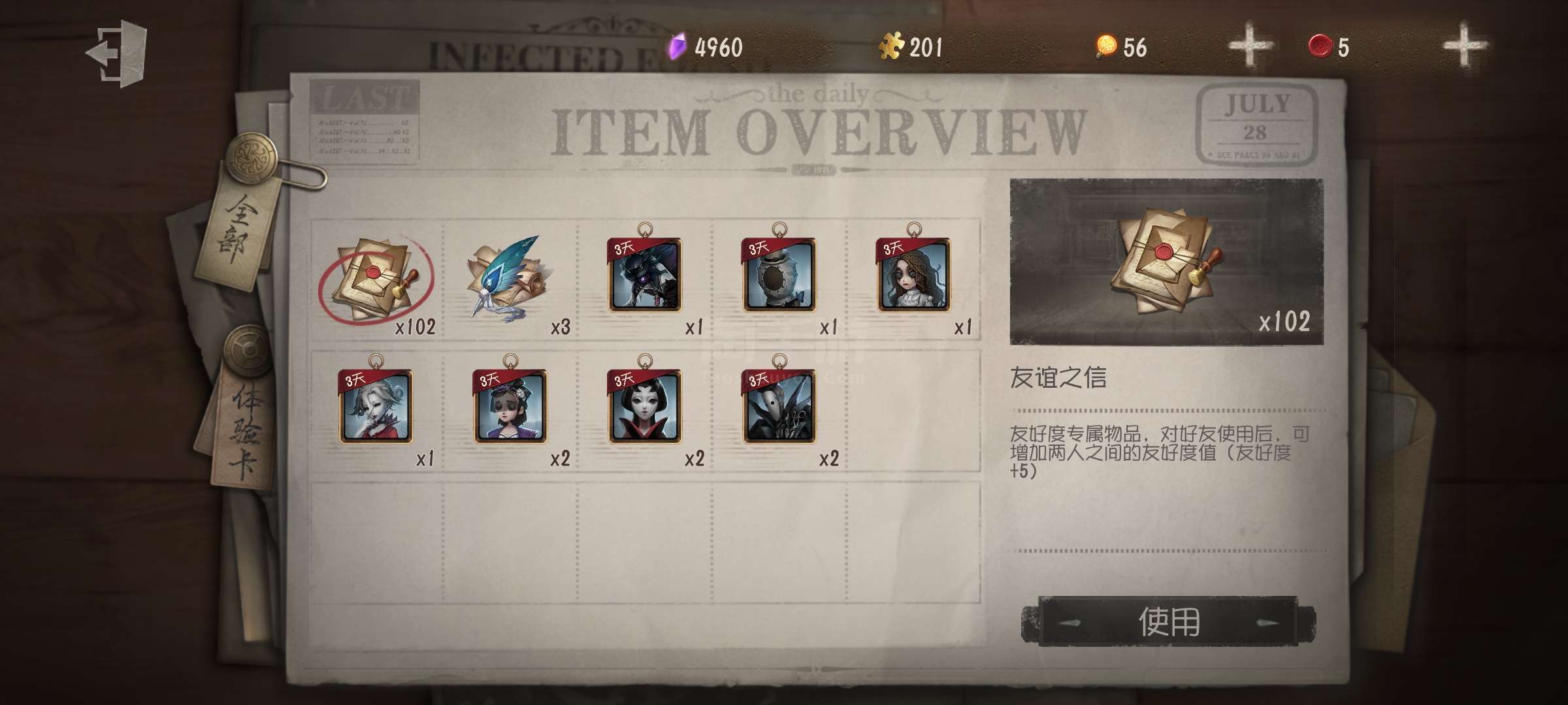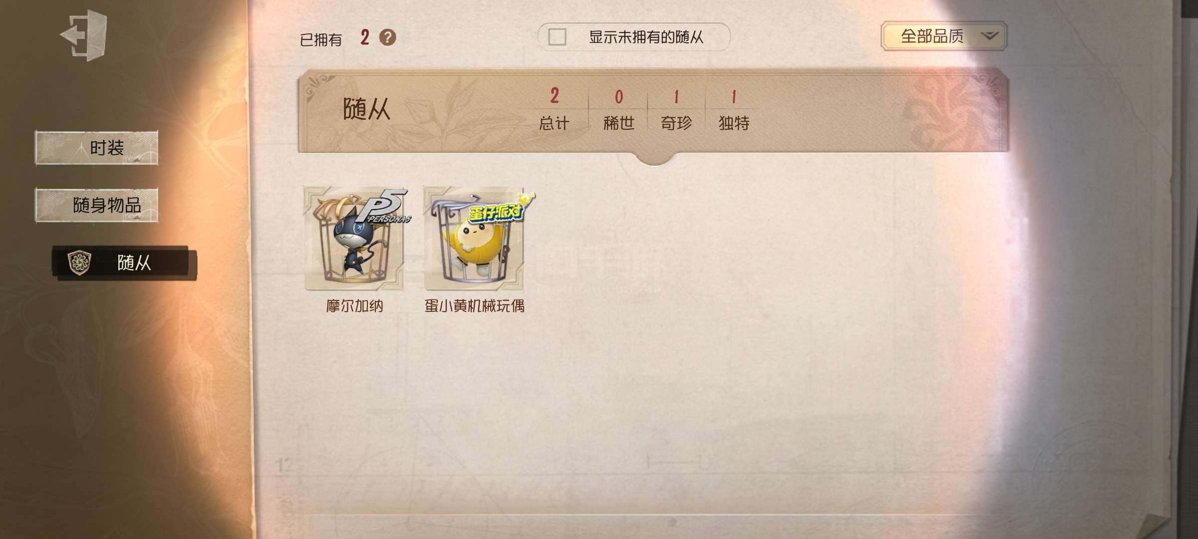 随身物品数量:
