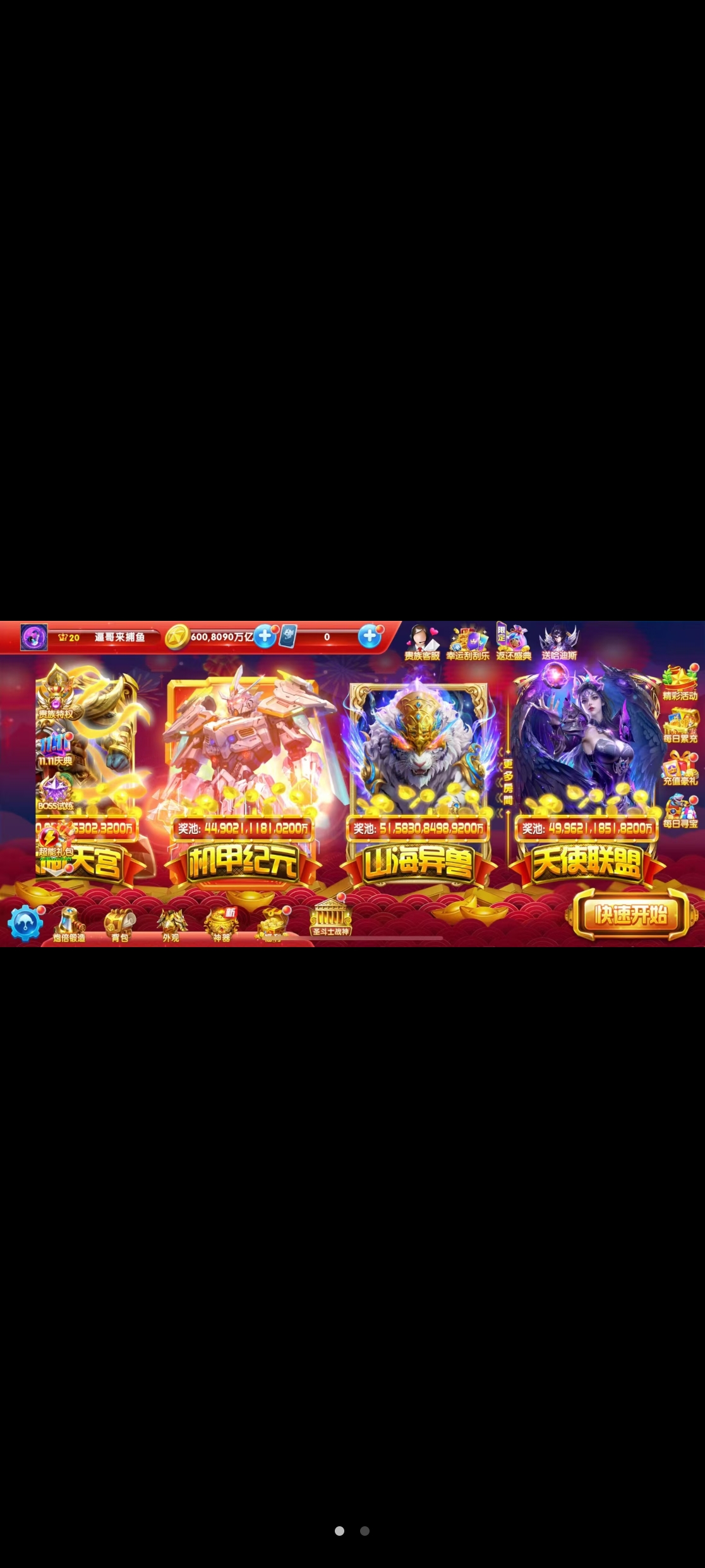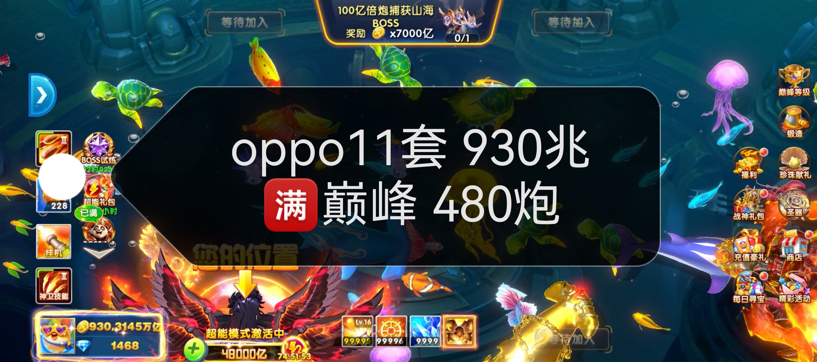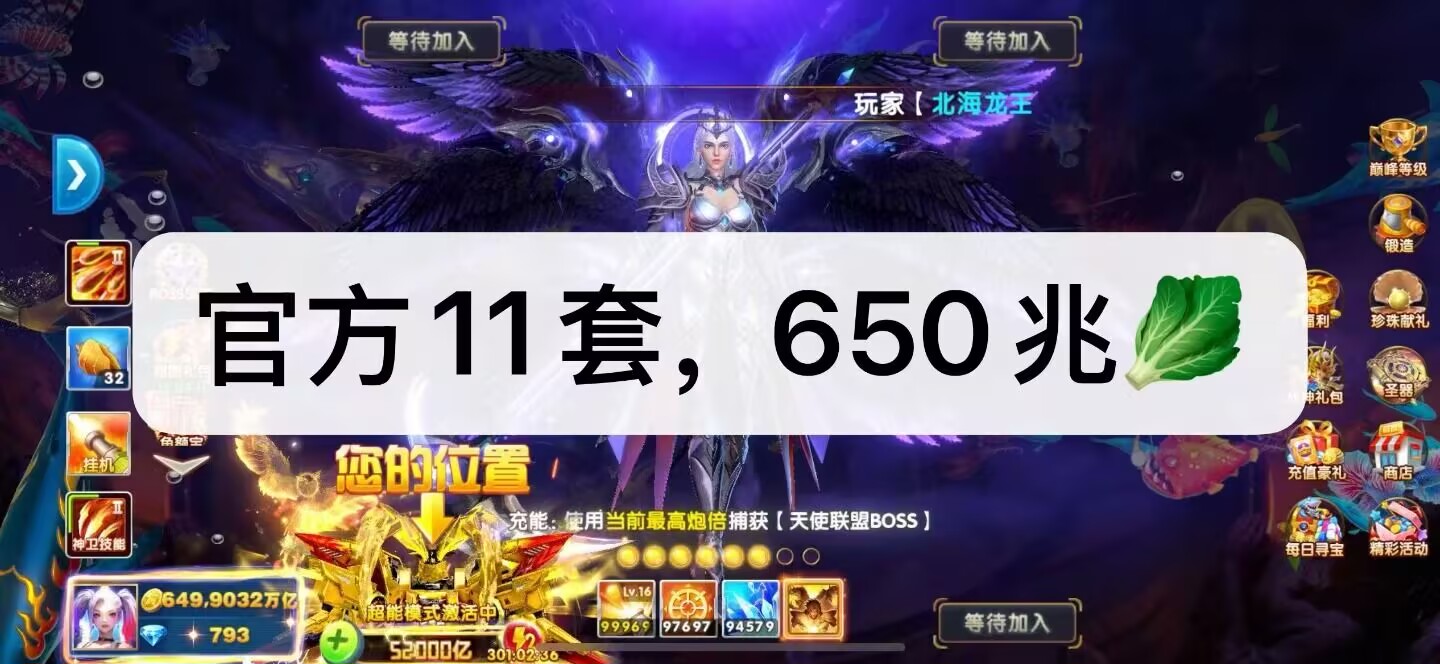 卖华为捕鱼大作战V16带22兆金币,特权十级,6套,2个神卫组合技,330点卷,便宜卖了,超低价