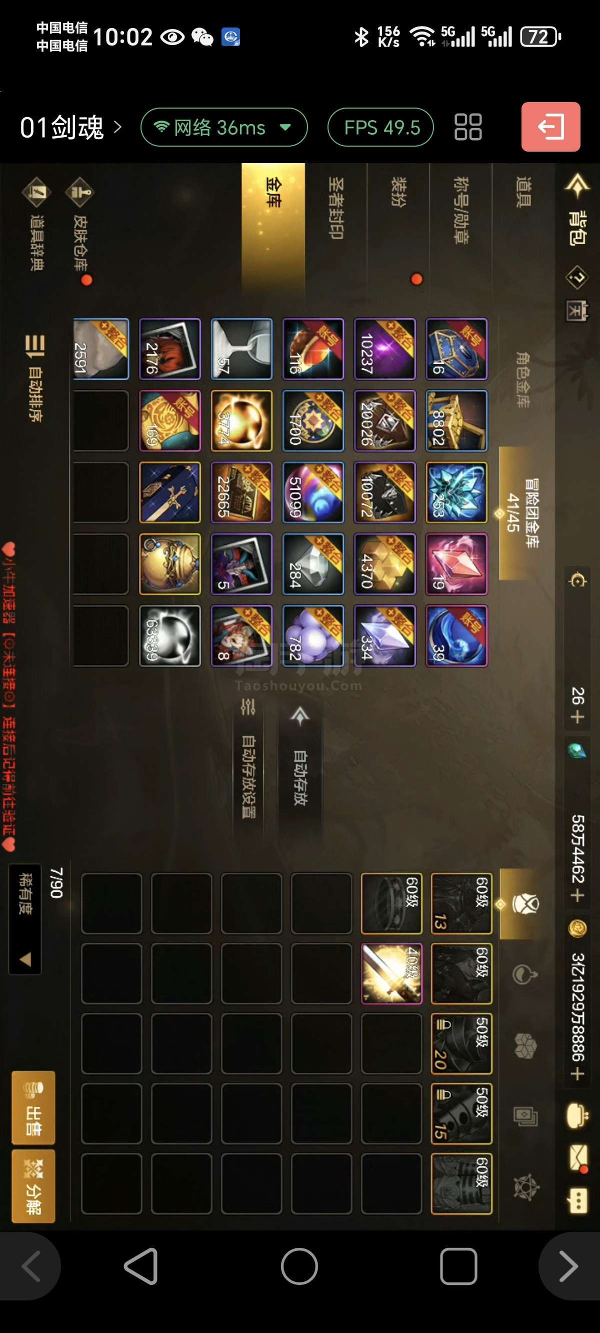 41000名望剑魂,带2000多张猫卡58泰拉。三宝珠双至尊,15满级,多个3万名望,每天自降50