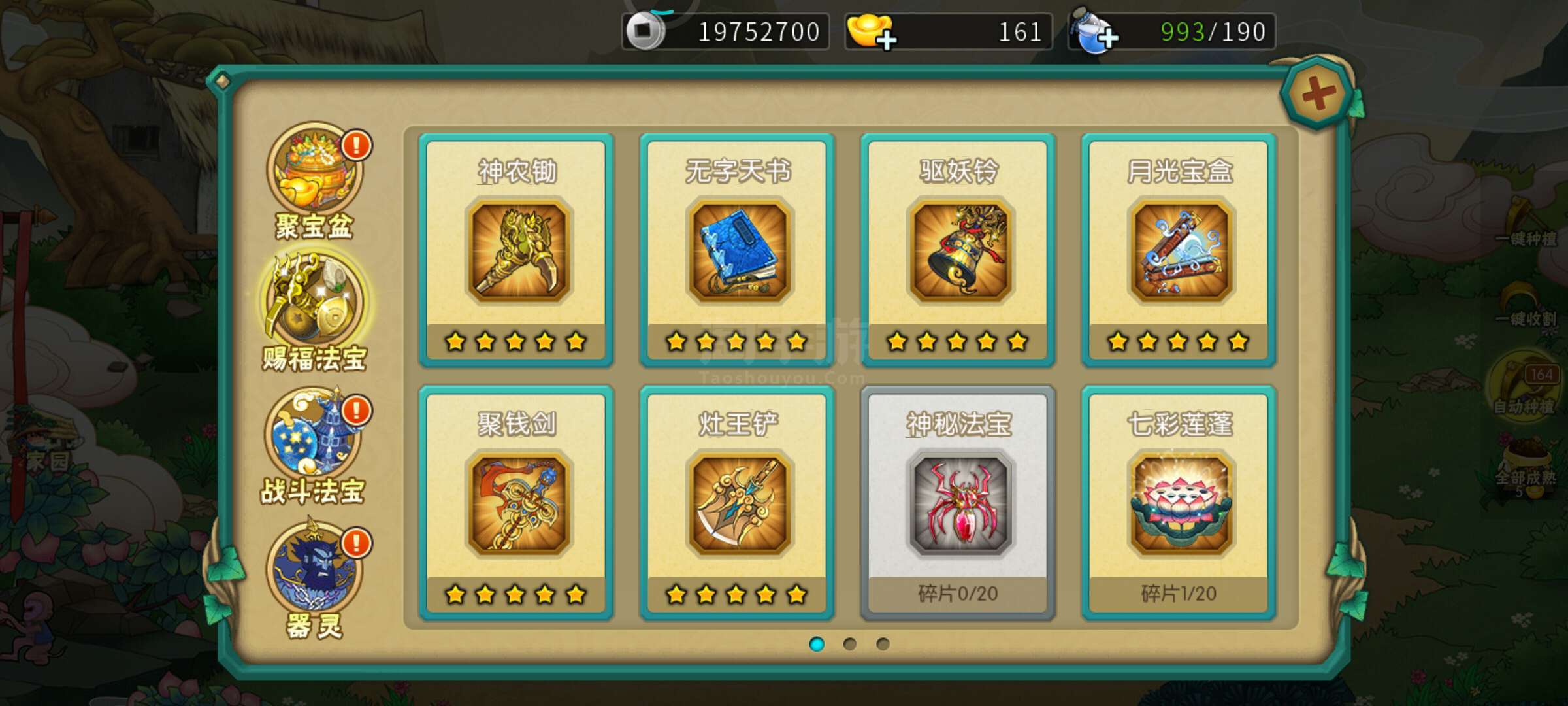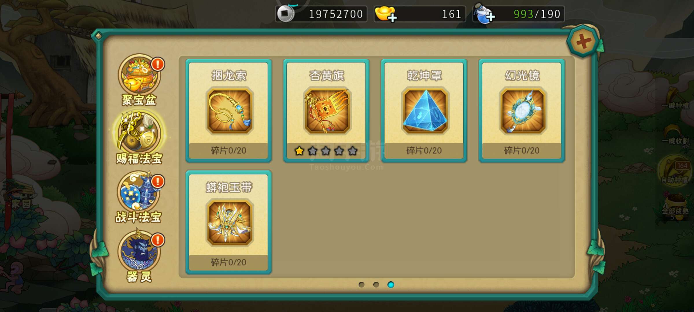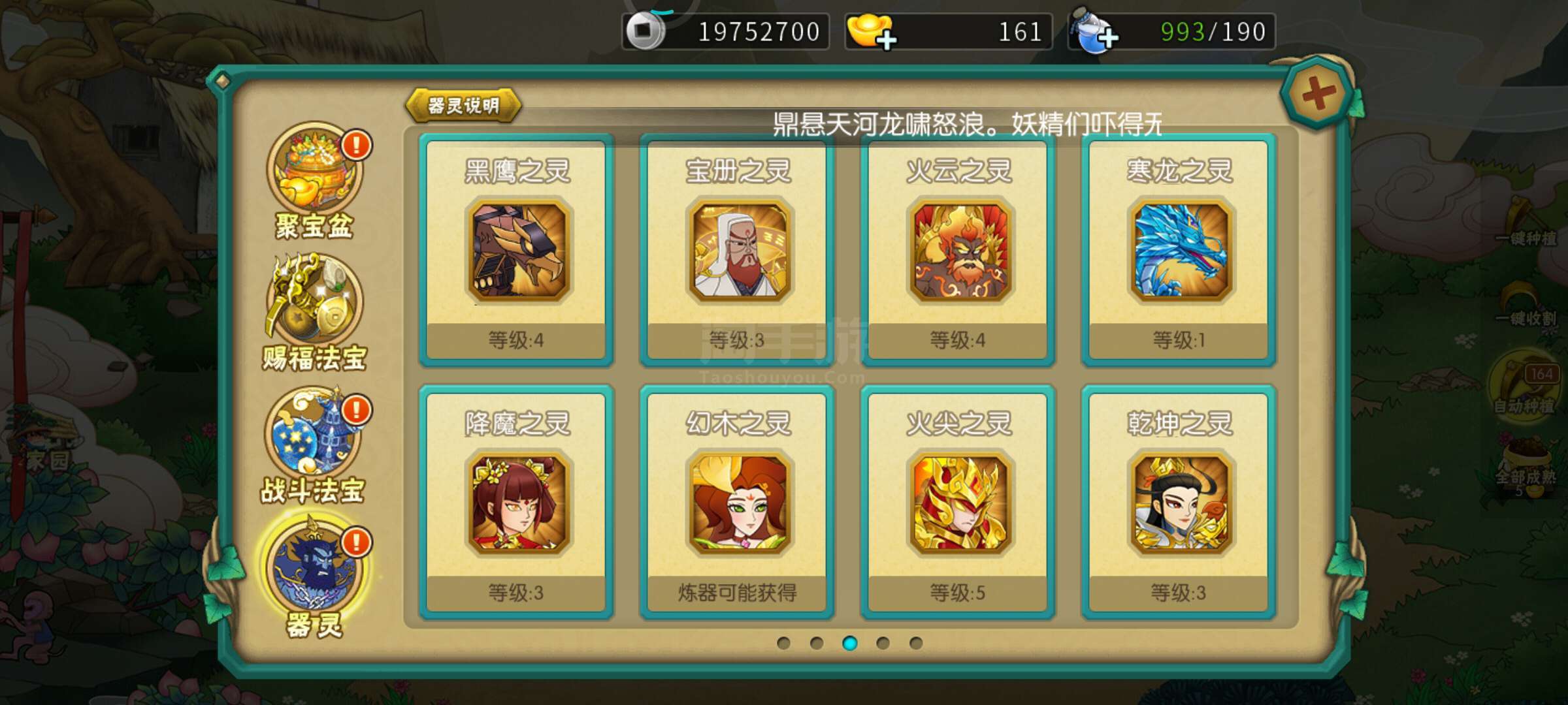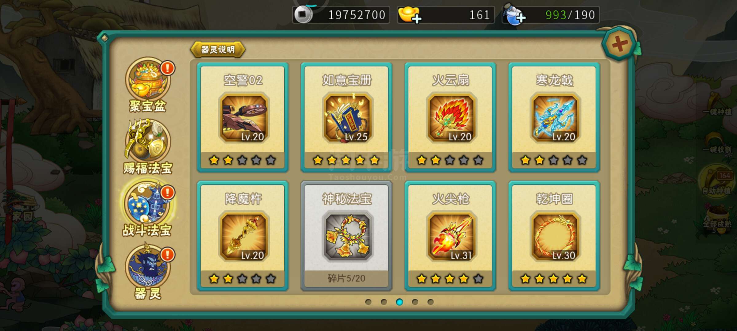 不玩,出售了。已到18。法宝应有尽有。器灵唯一高的诛仙9级一直上不去。神兽3个。背包有一块祥龙令