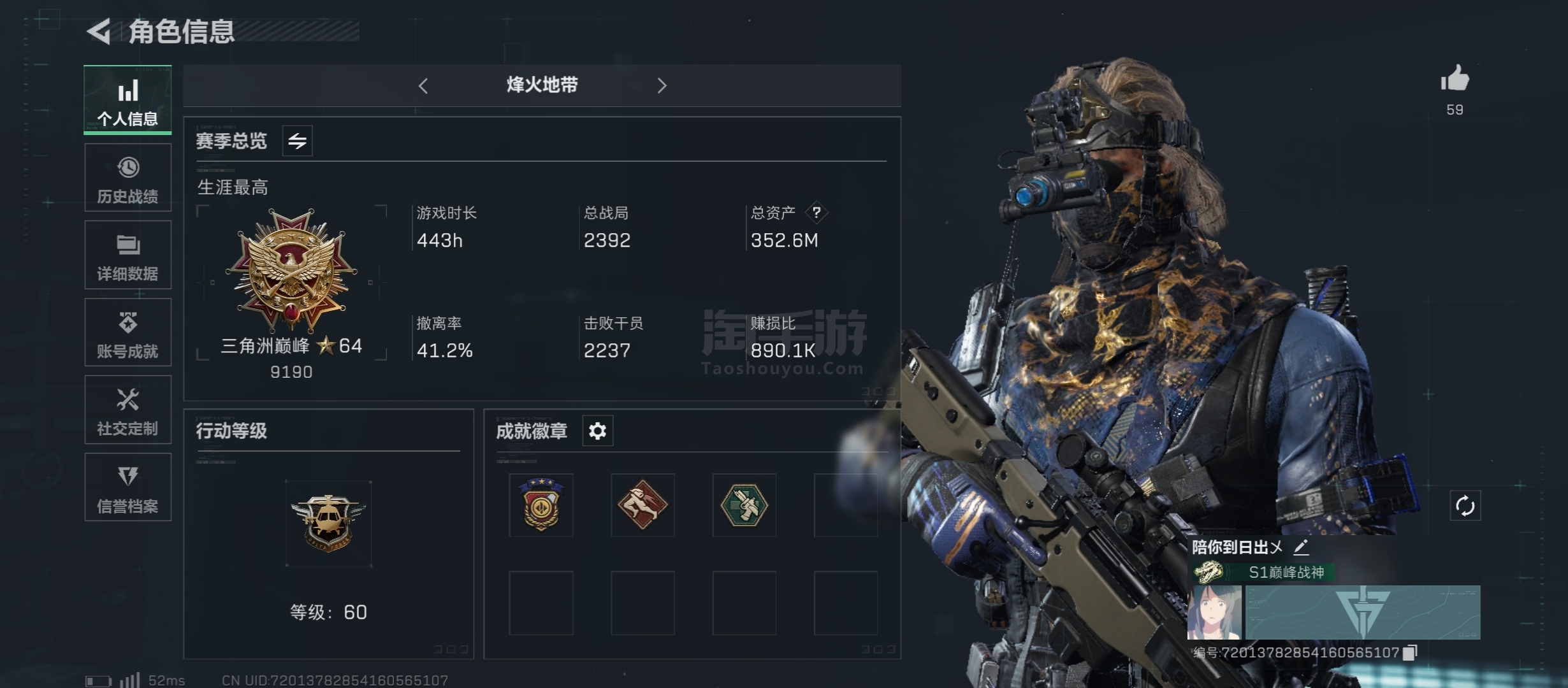 三角洲行动【苹果QQ】可二次 52m 双红皮蝴蝶刀 5级体力7级仓库 创益工坊 趣味贴纸 3s龙 7位Q