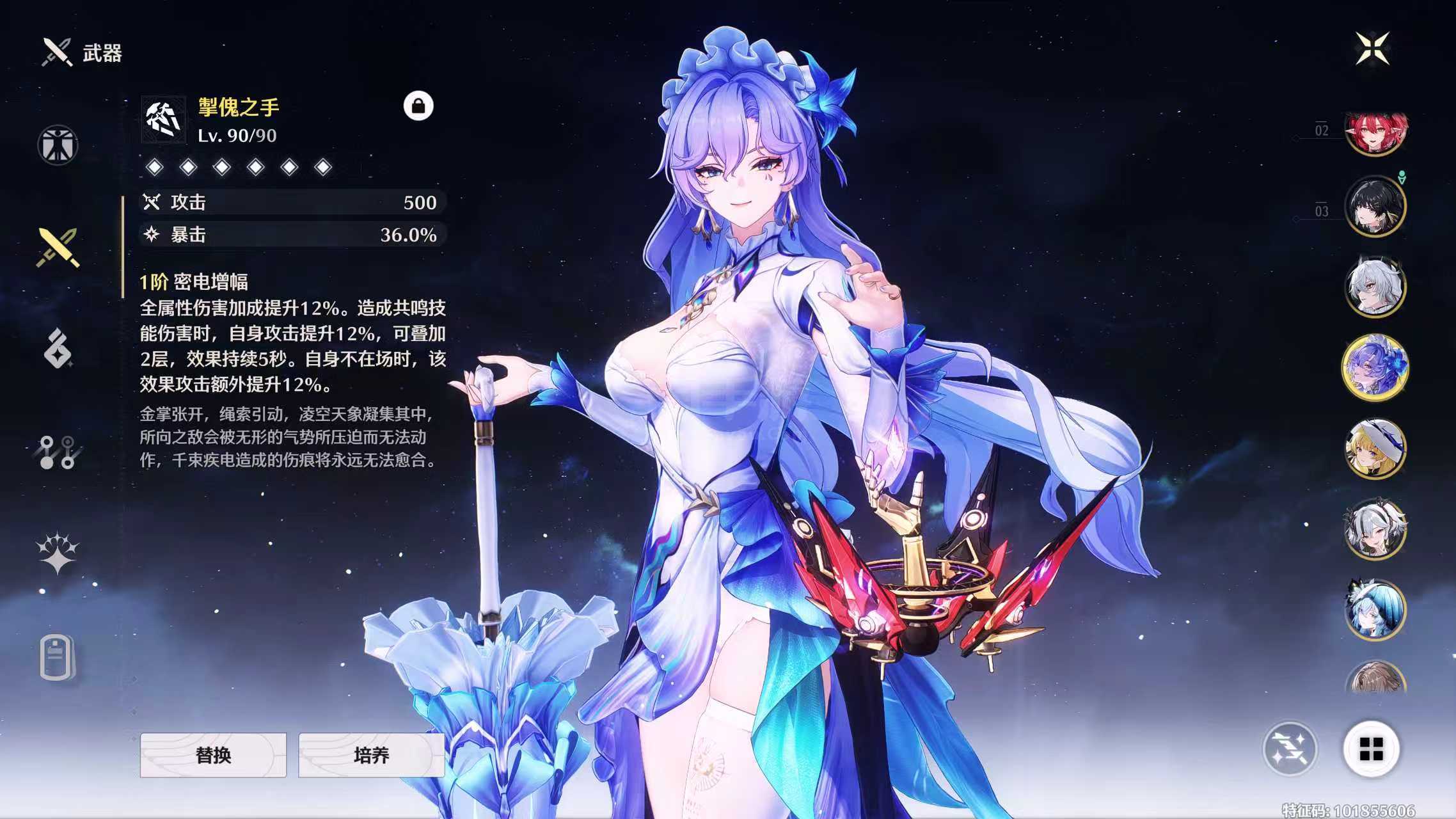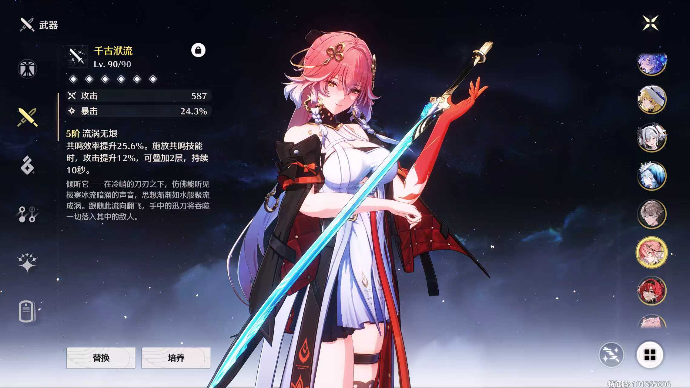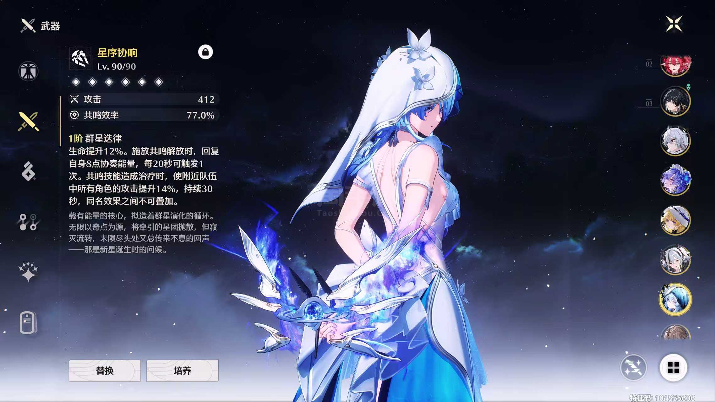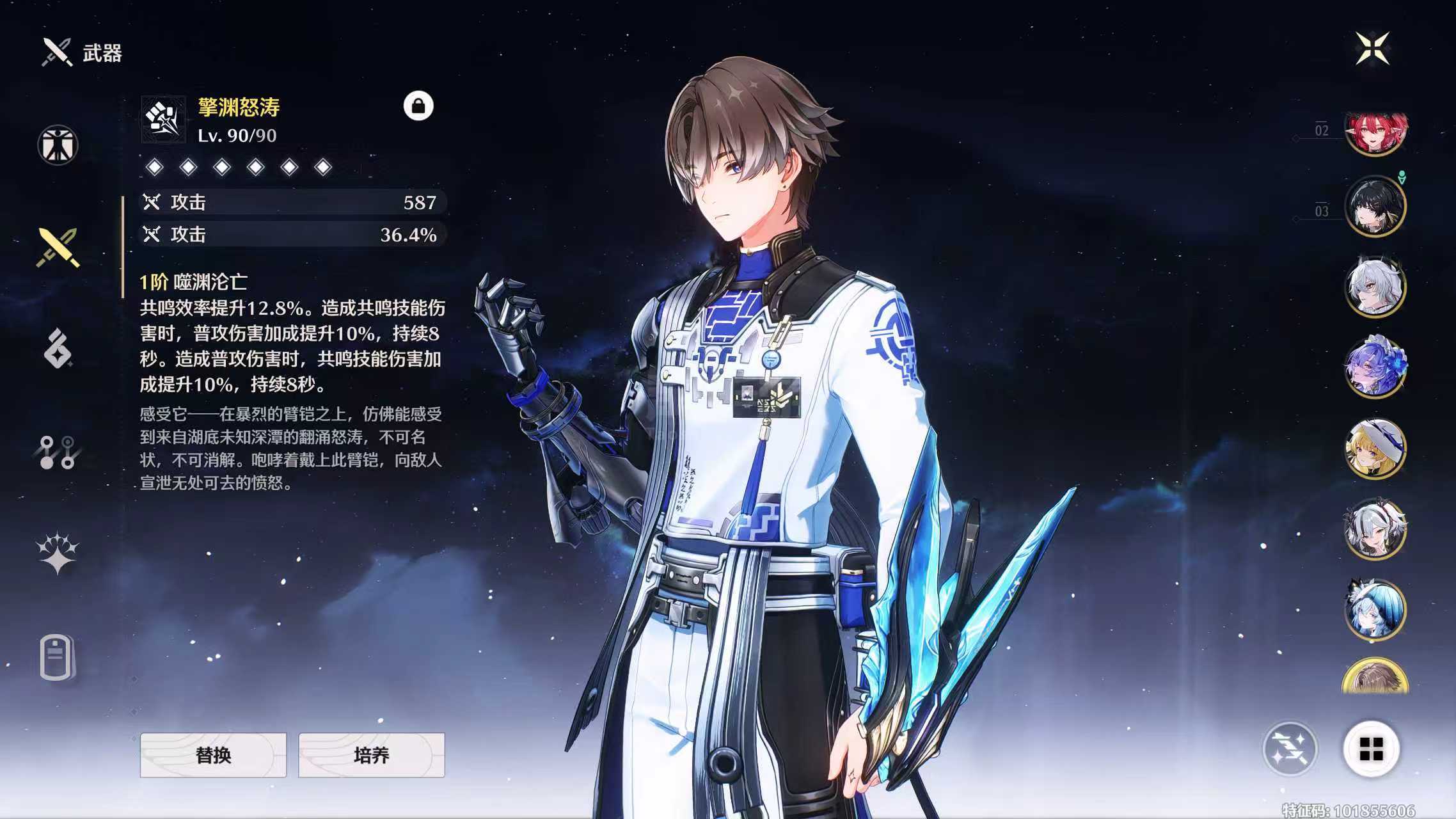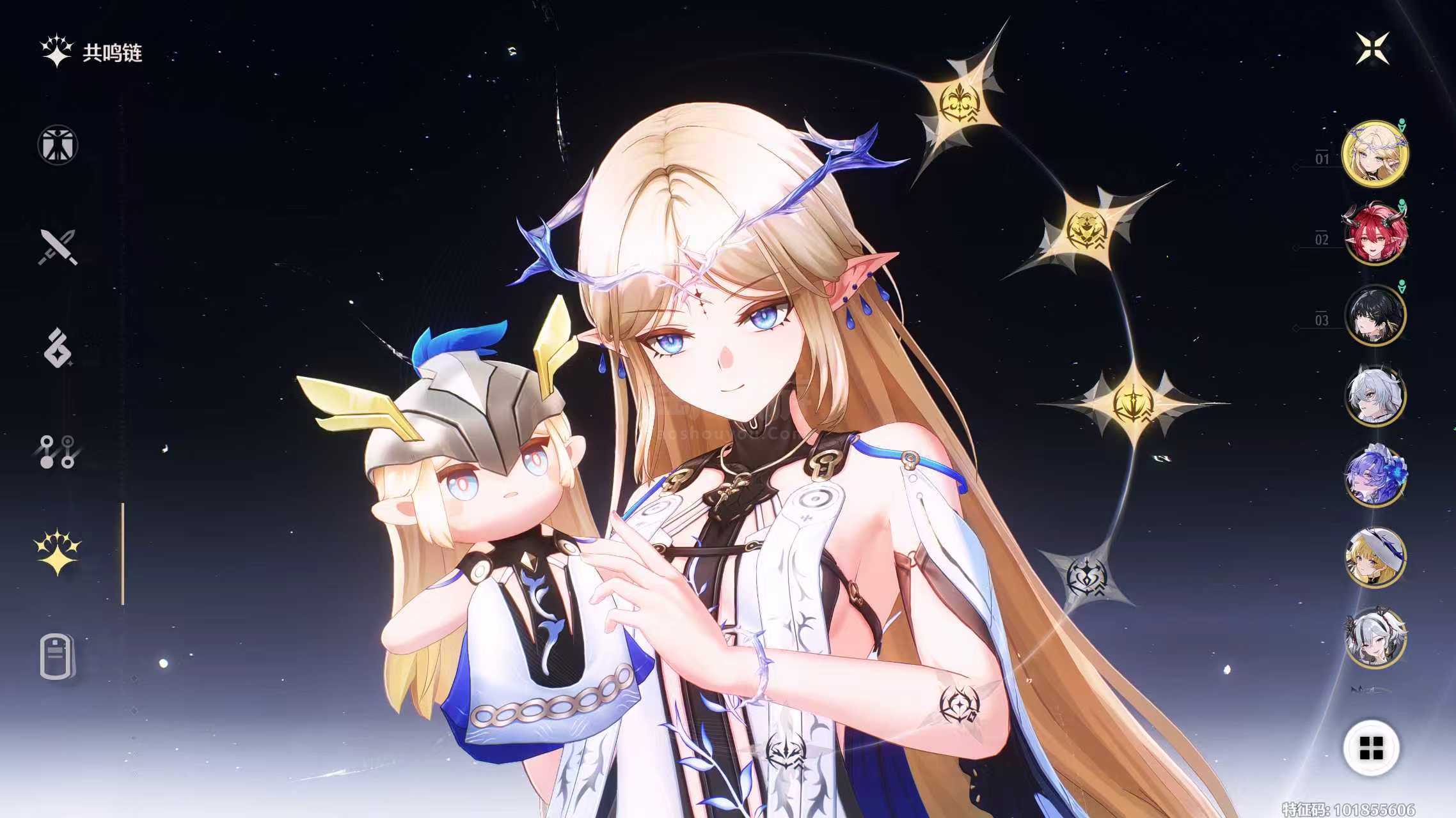 鸣潮【安卓官方】老号具有高配高练主流配对,31卡提00夏空21菲比01赞妮01守岸,后续的弗洛洛也可以跟坎组,可小刀