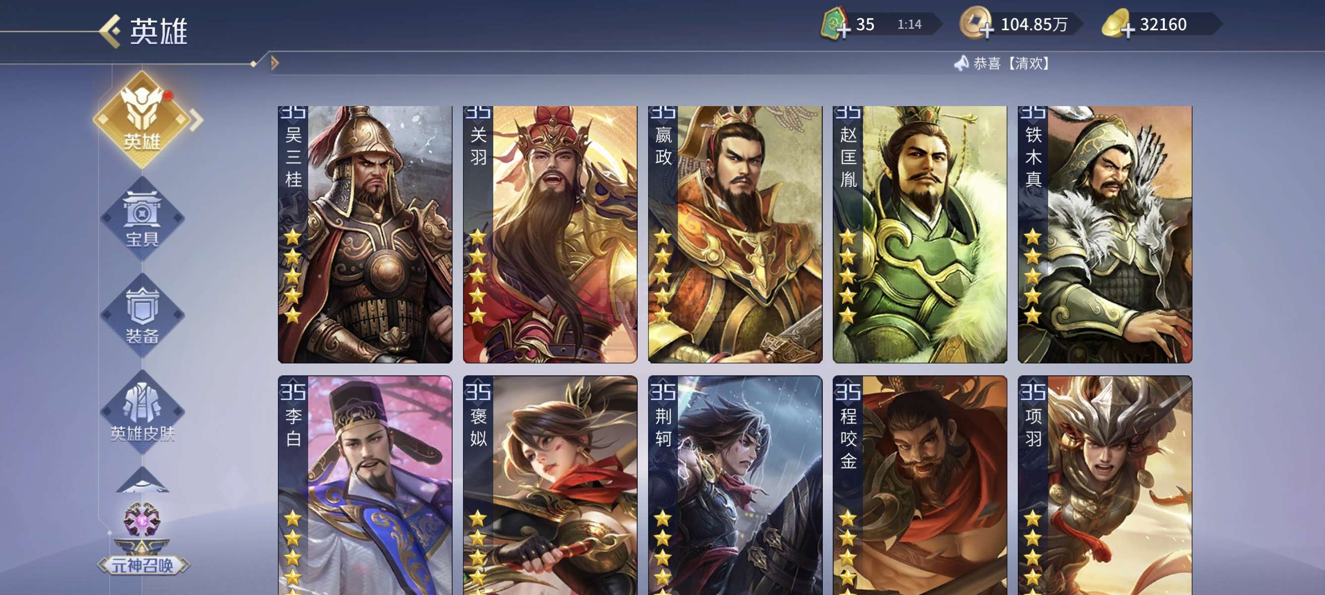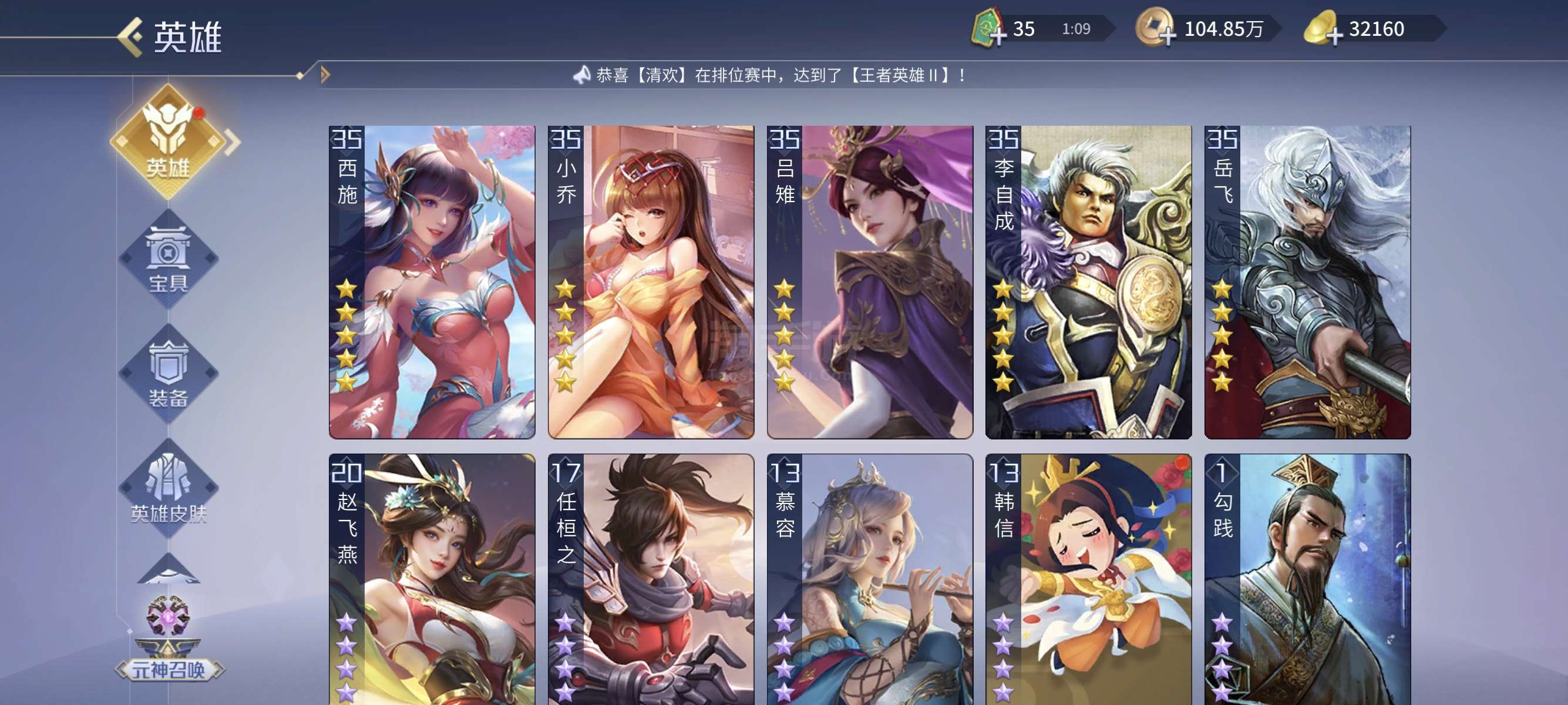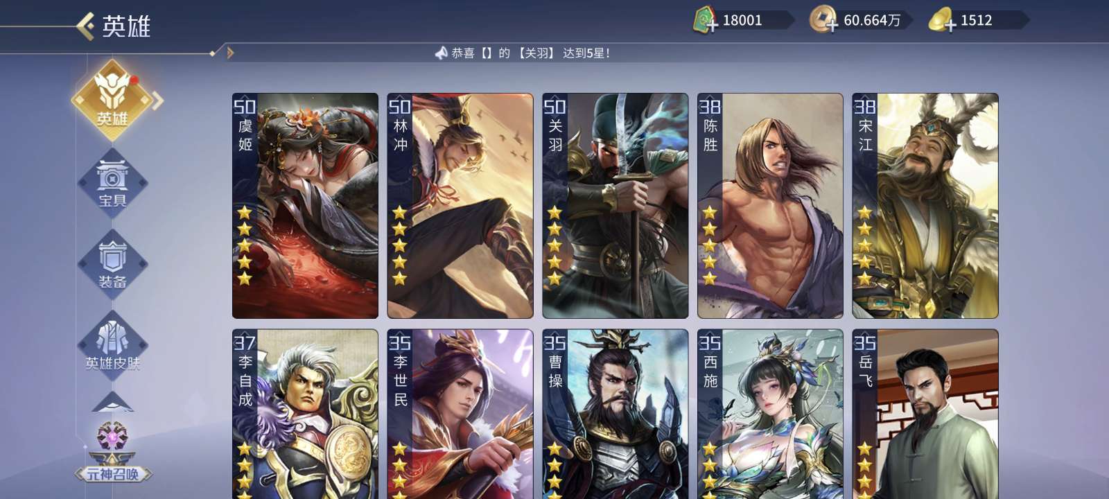 准v9,28个五星英雄,三星杨玉环,现在几乎没有元宝了