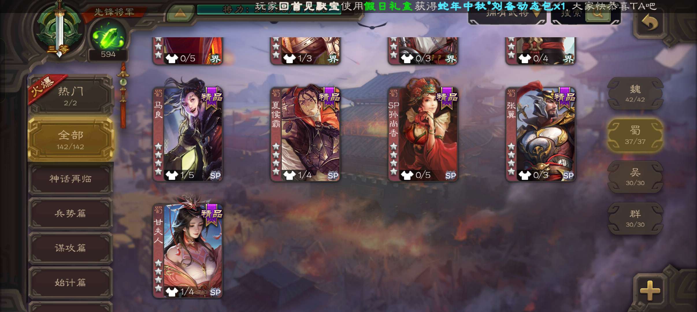 4史诗3神先锋,6万豆4.3万毛,回廊动白马神吕布谋马超花鬘,神周瑜神吕蒙界满宠崔琰甘夫人142将