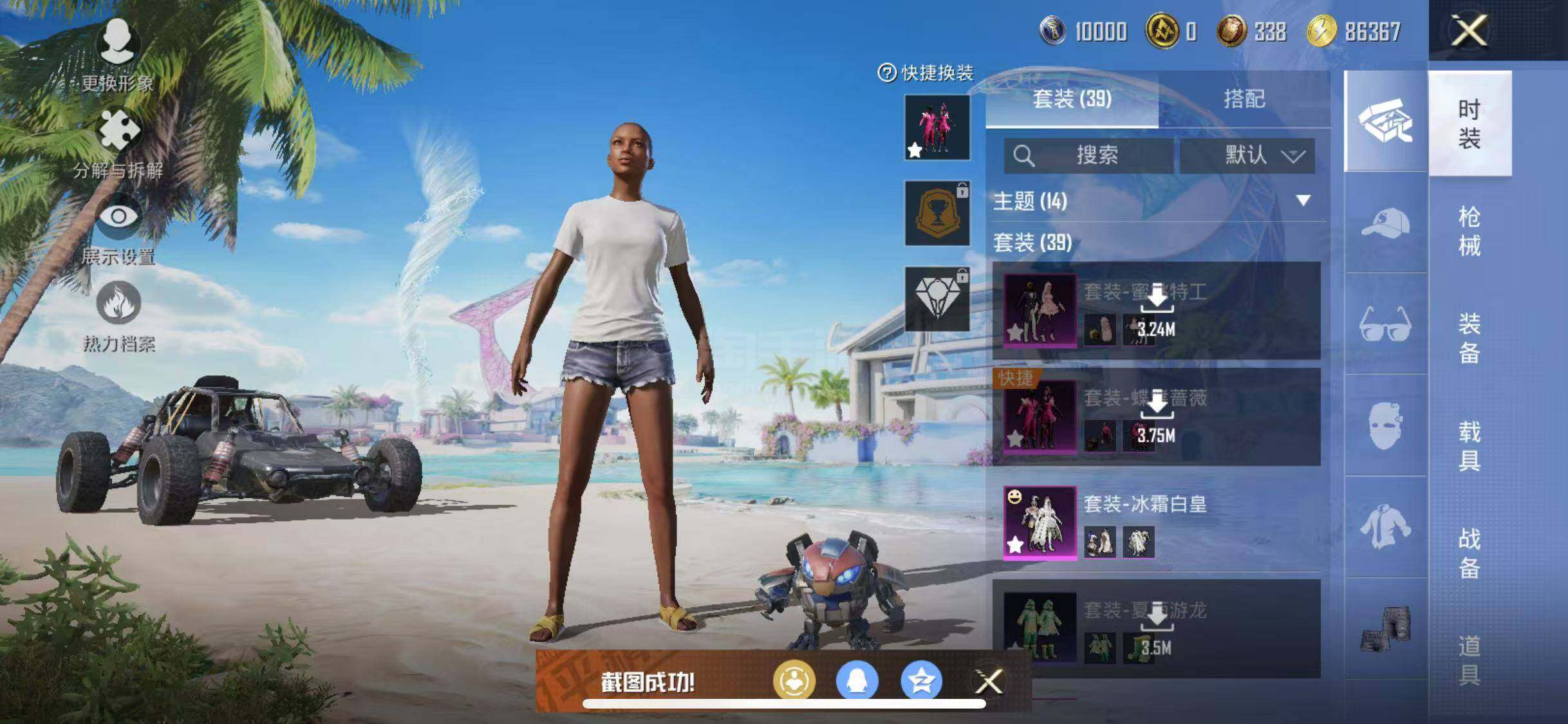 【优质套装】:粉装-冰霜白皇,粉装-蜜桃特工,粉装-蝶舞蔷薇,角色-复仇流浪者