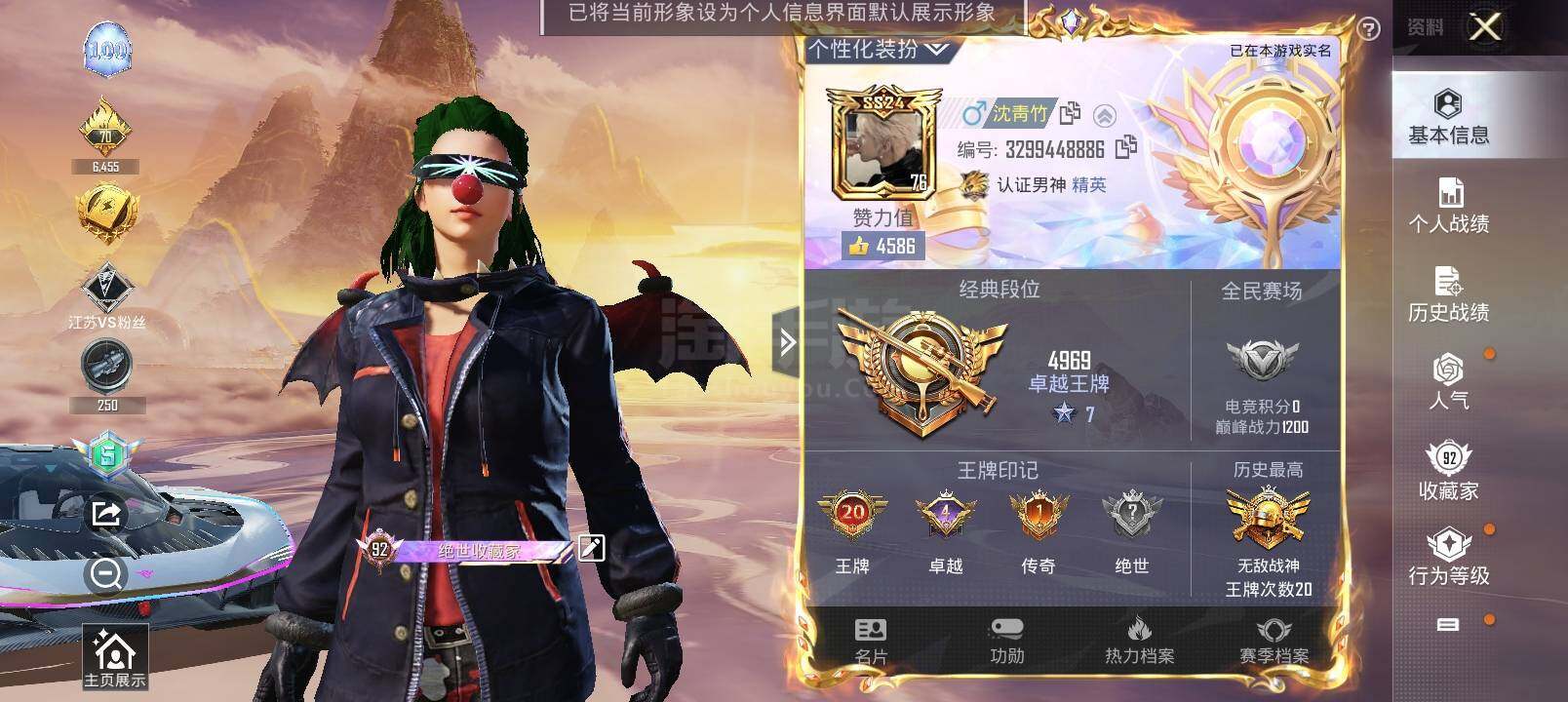 安卓微信 和平精英男神素材号 2红 4级墨龙 战神框 怪诞 赤蝎 都市 金鞋 发光眼罩 天网