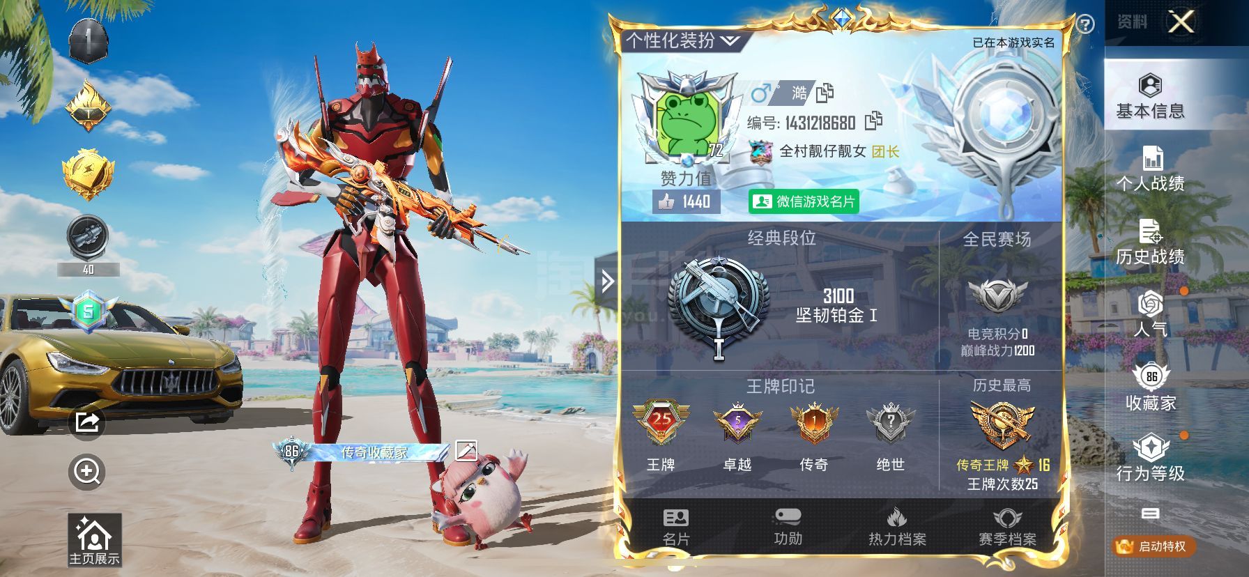 苹果微信 和平精英 可二次 苹果V-131573热力值 25王牌印记 历史传奇