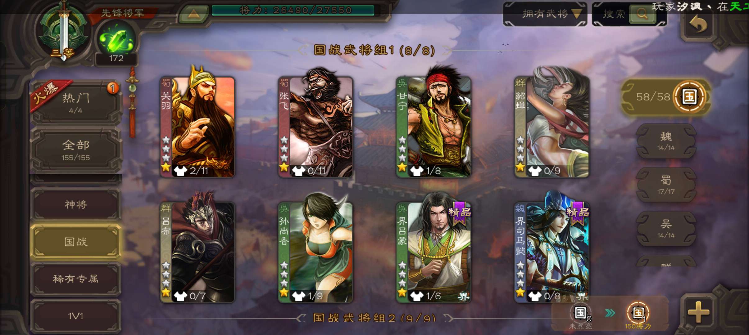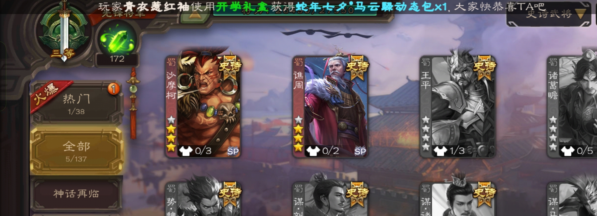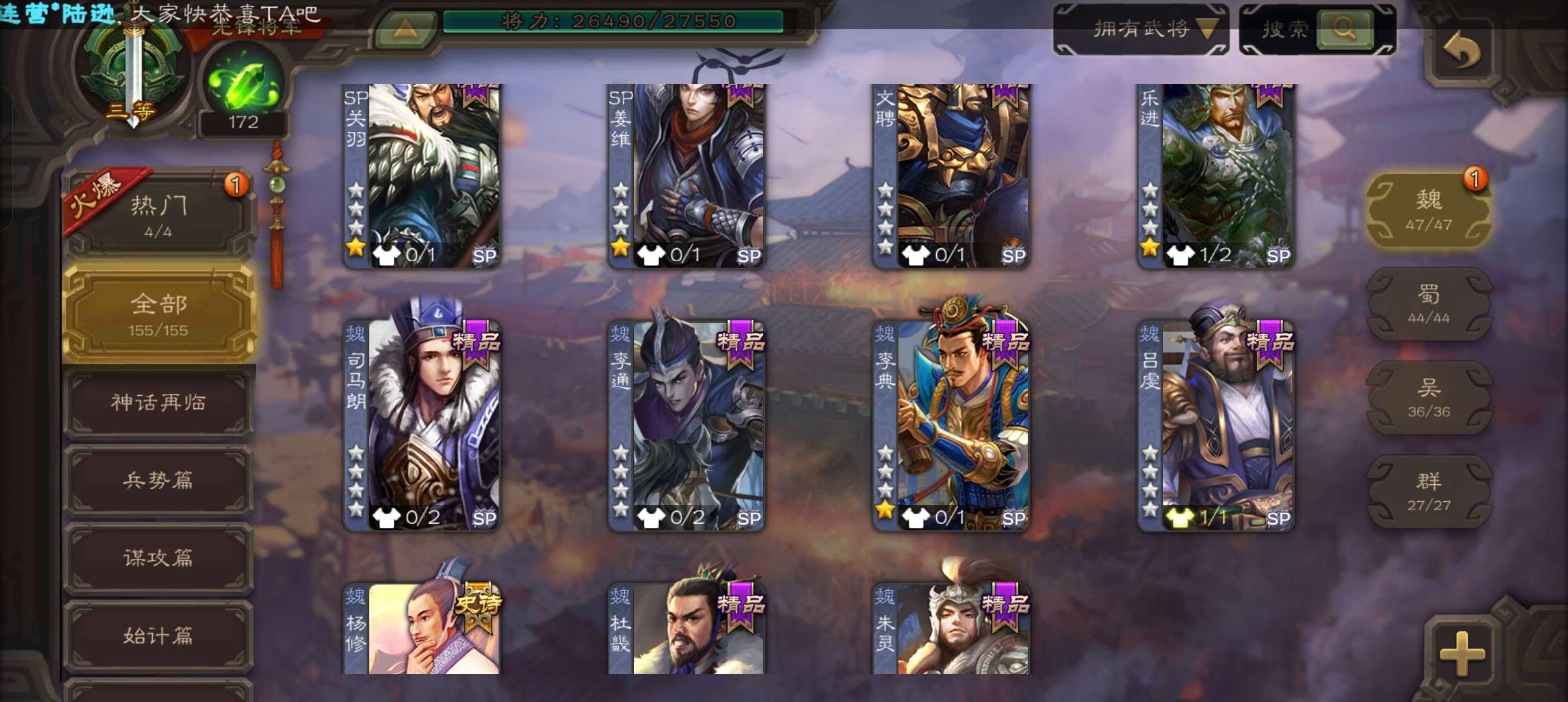5史诗先锋,6万羽毛5万豆,界钟会沙摩柯谯周嵇康杨修,神吕蒙张春华崔琰界关羽孙茹凌操155将
