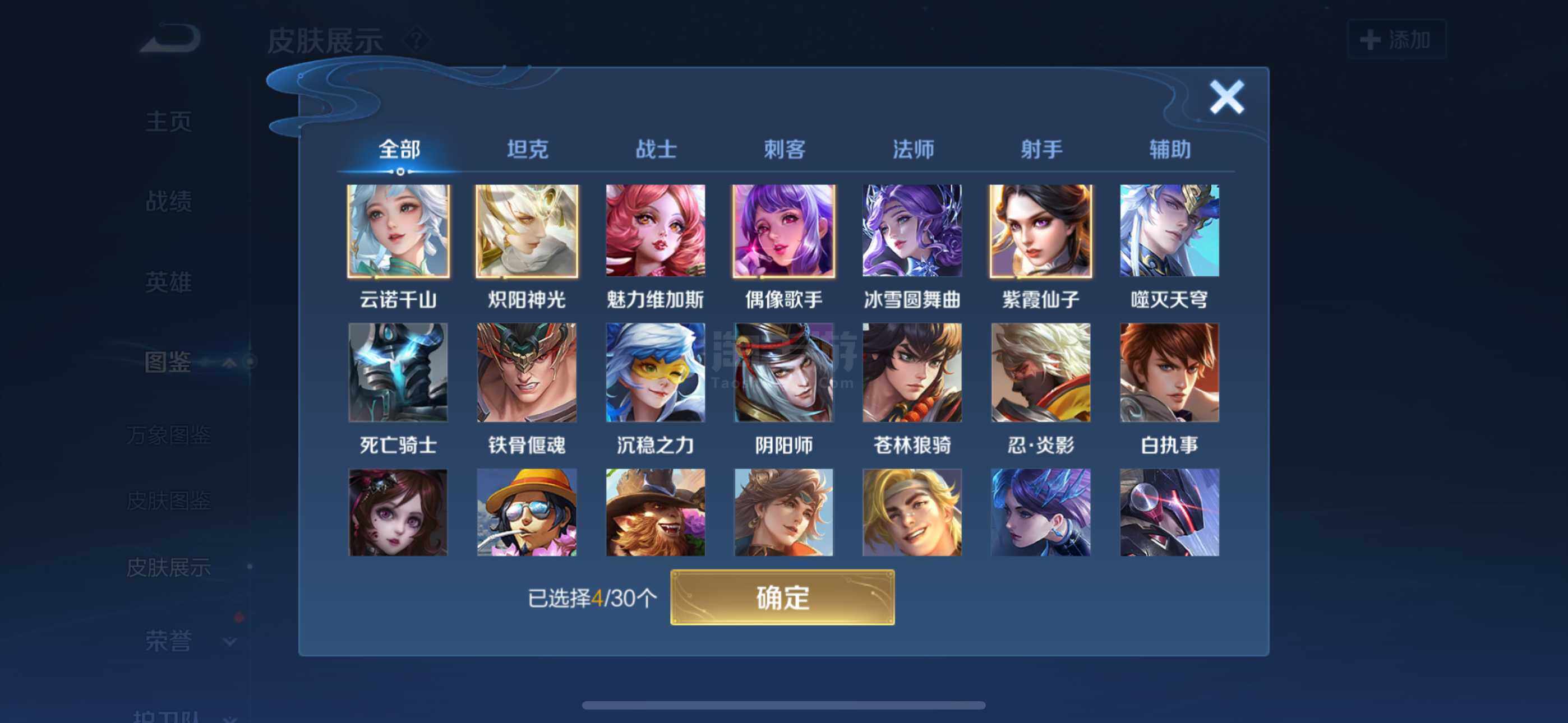 【史诗皮肤】:露娜紫霞仙子,甄姬冰雪圆舞曲,王昭君偶像歌手,妲己魅力维加斯