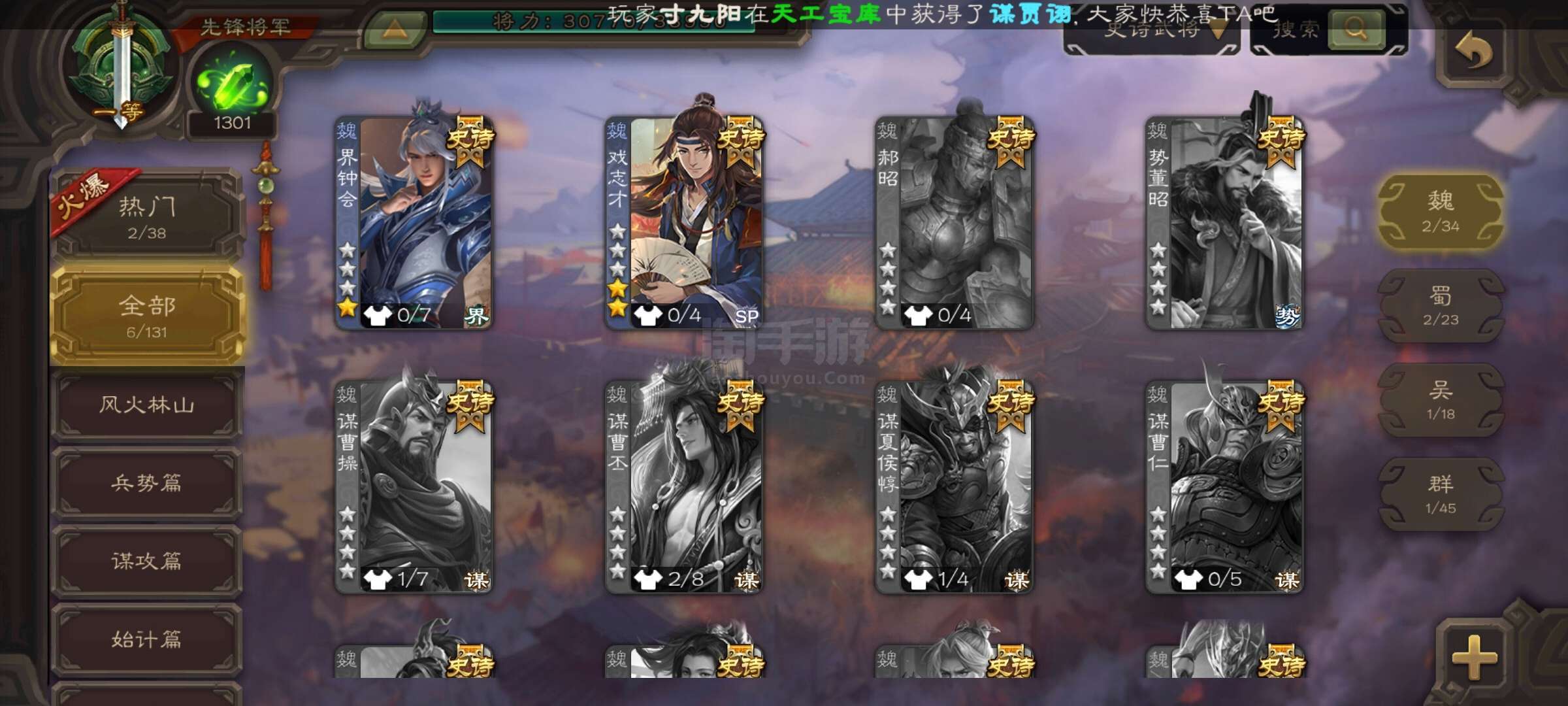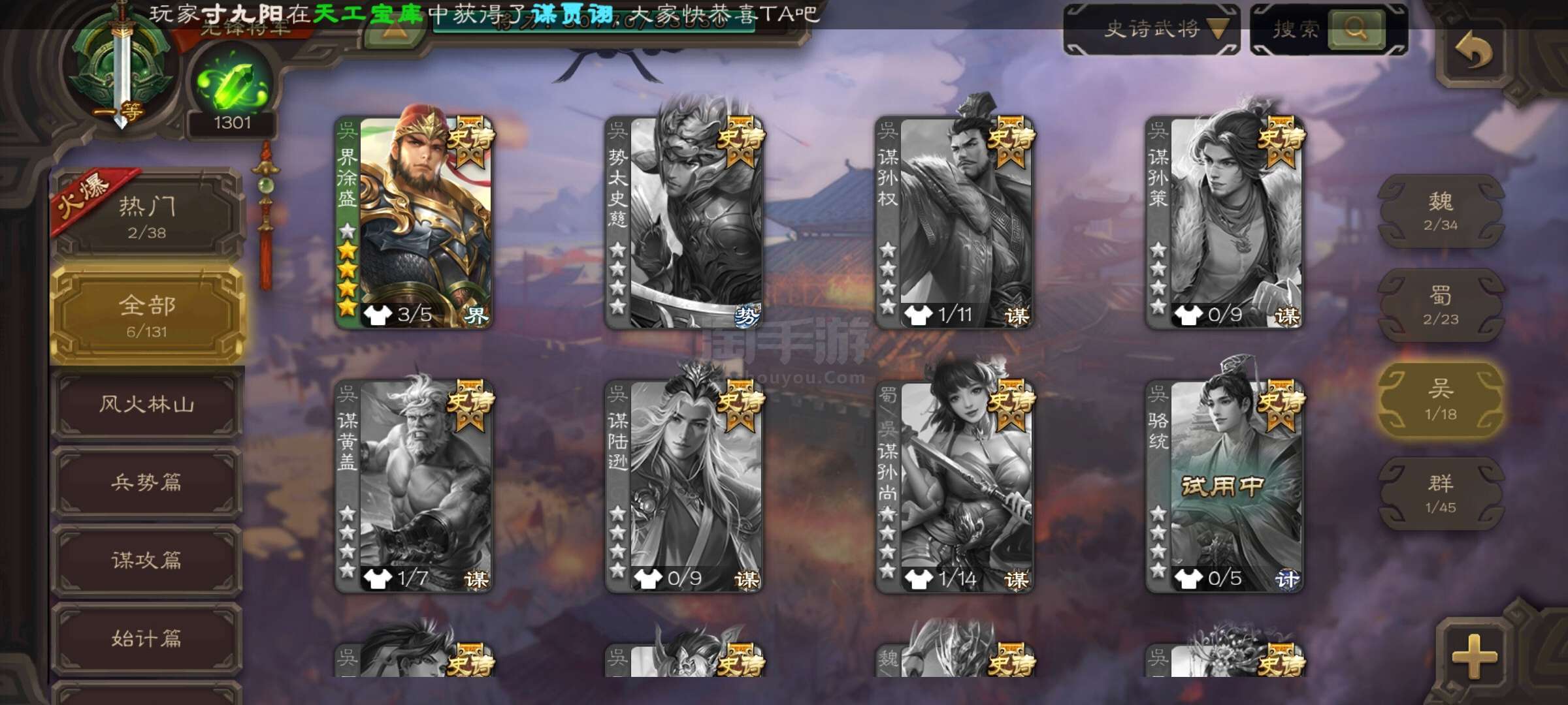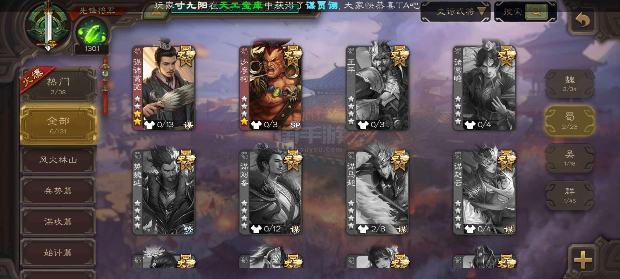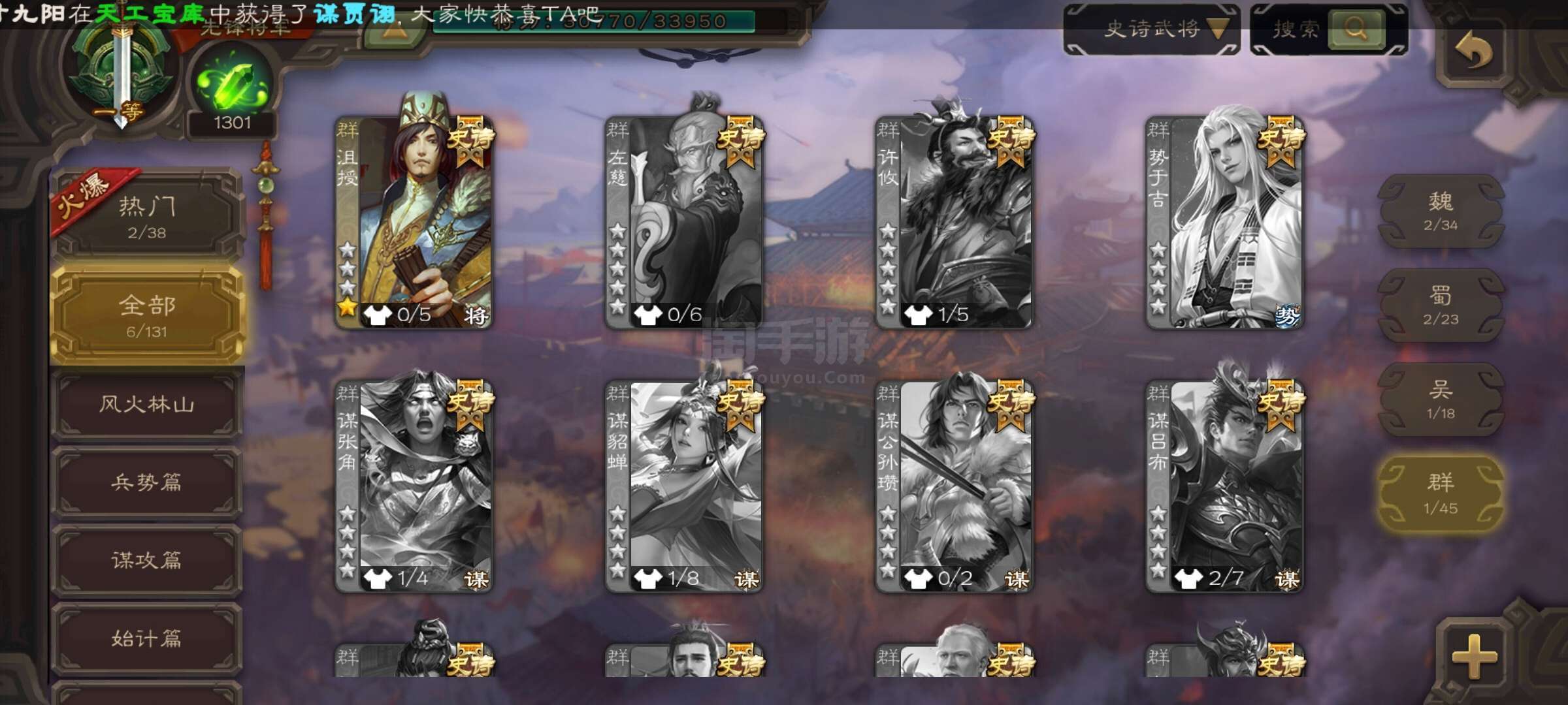 史诗武将数量: