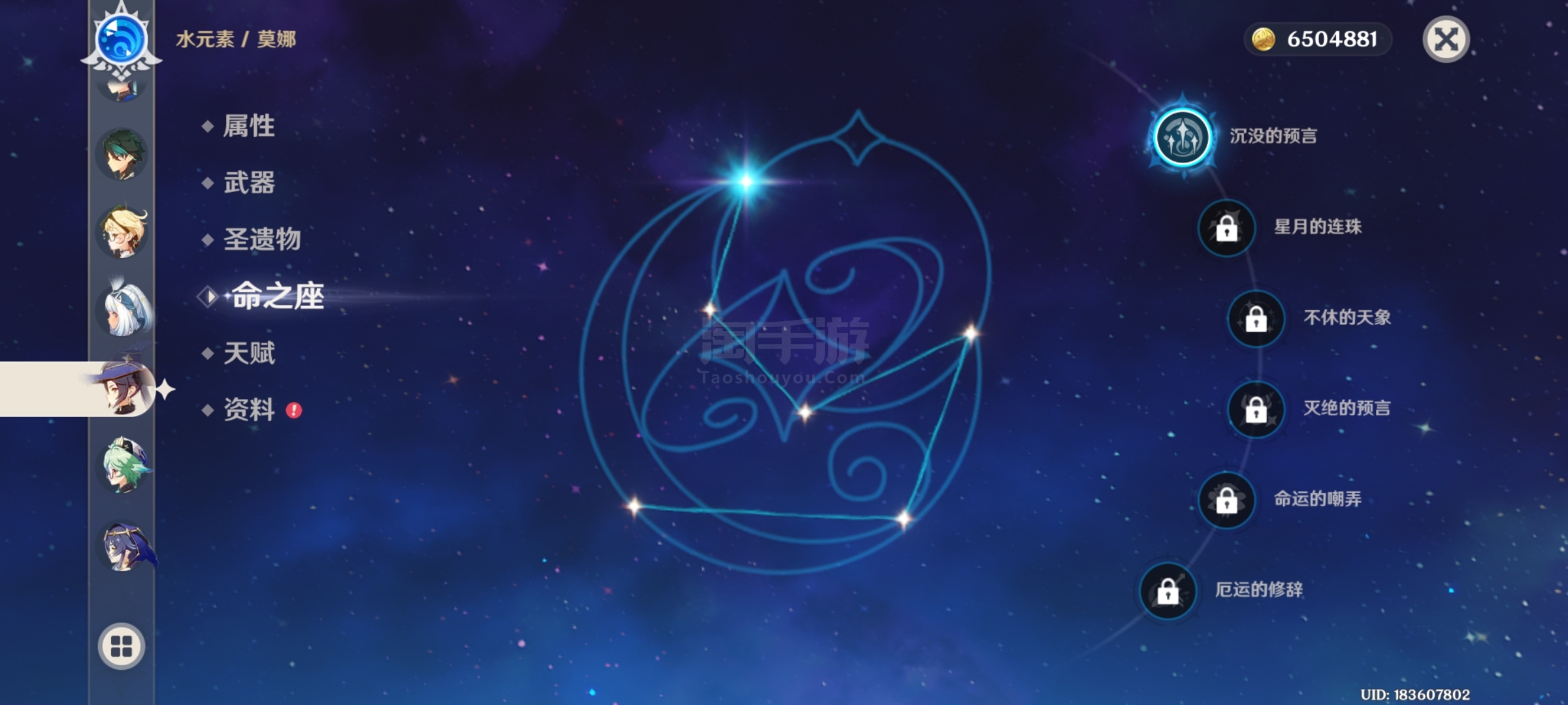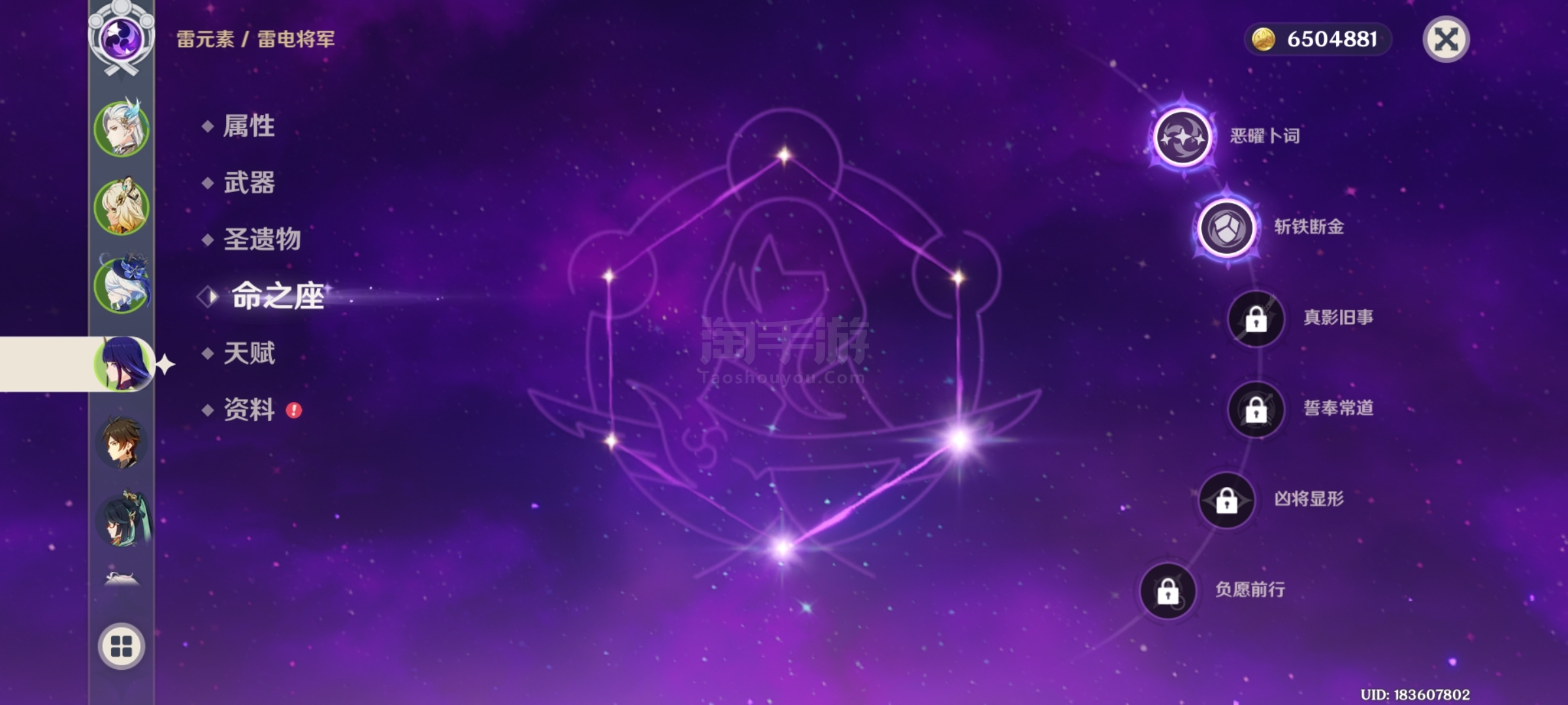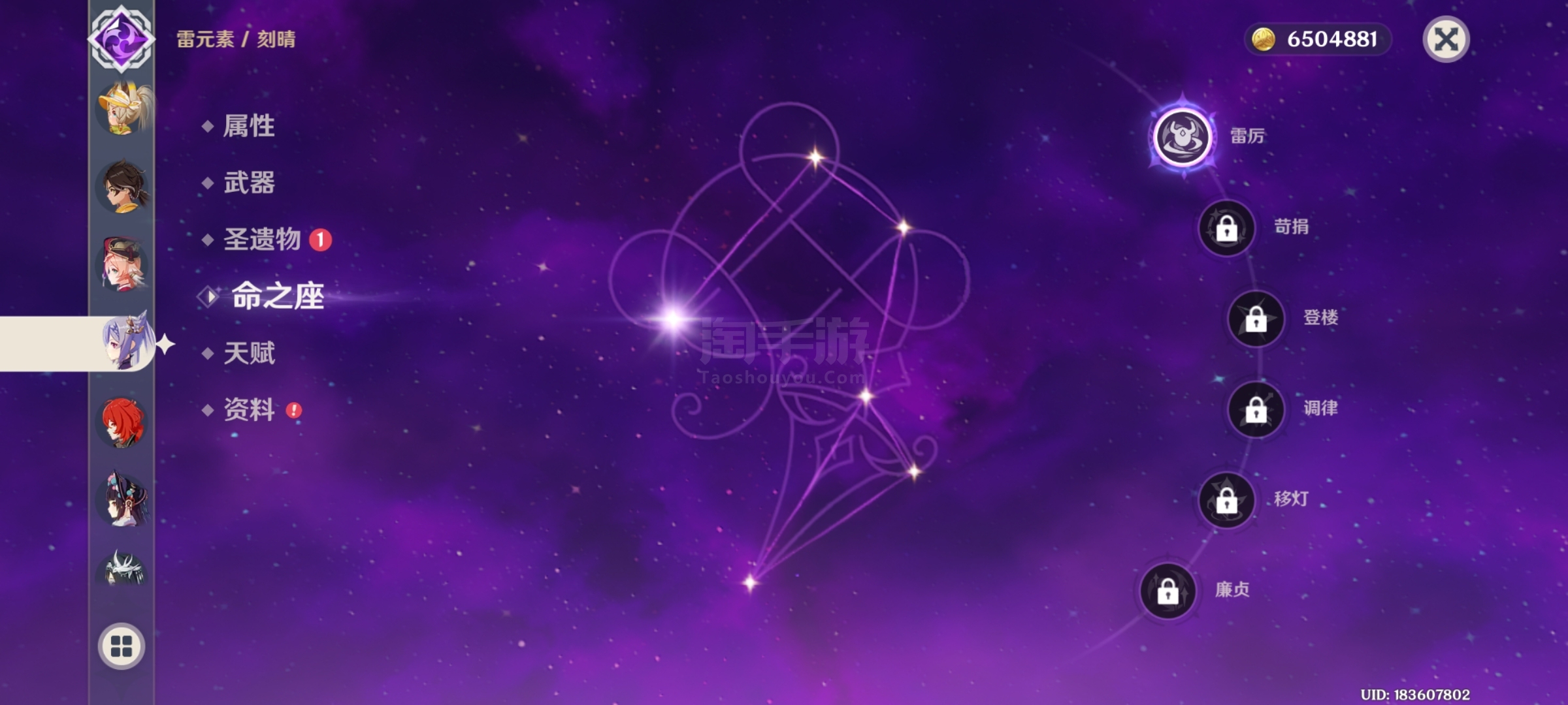 一命龙王一命胡桃二命雷神,强力角色基本都有练度高可以满星深渊崩铁主打追击队大黑塔队dot队可轻松满星