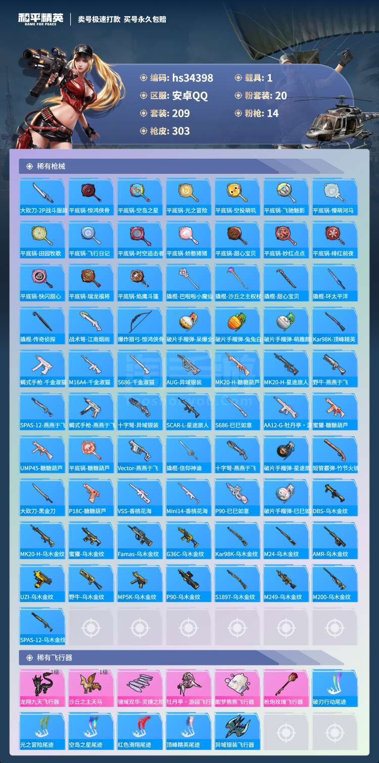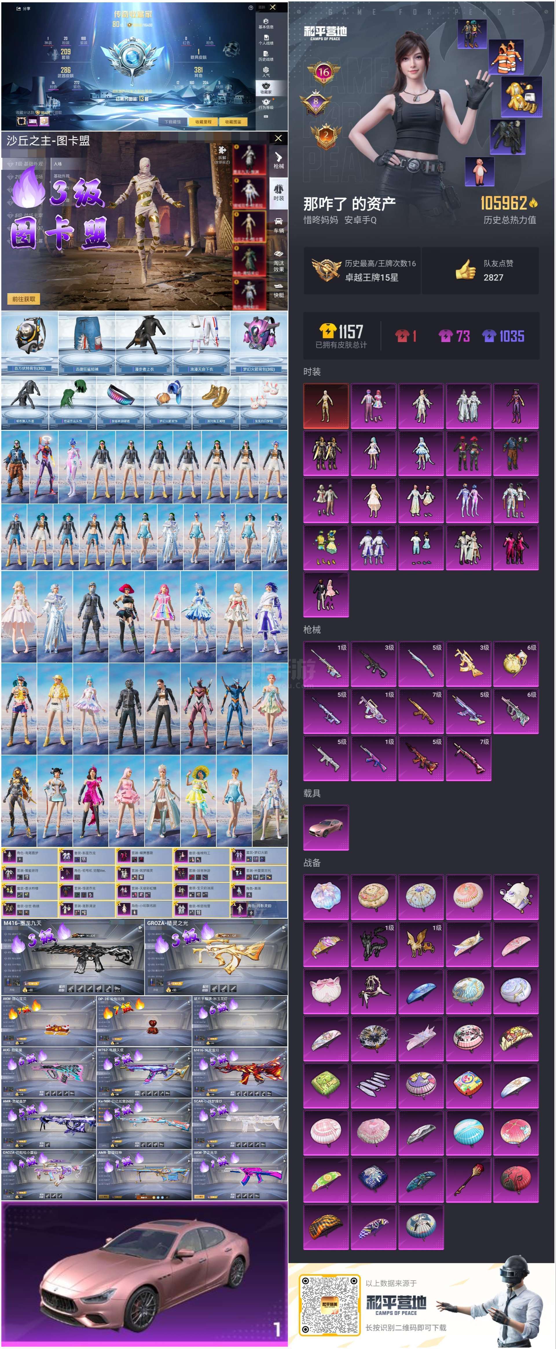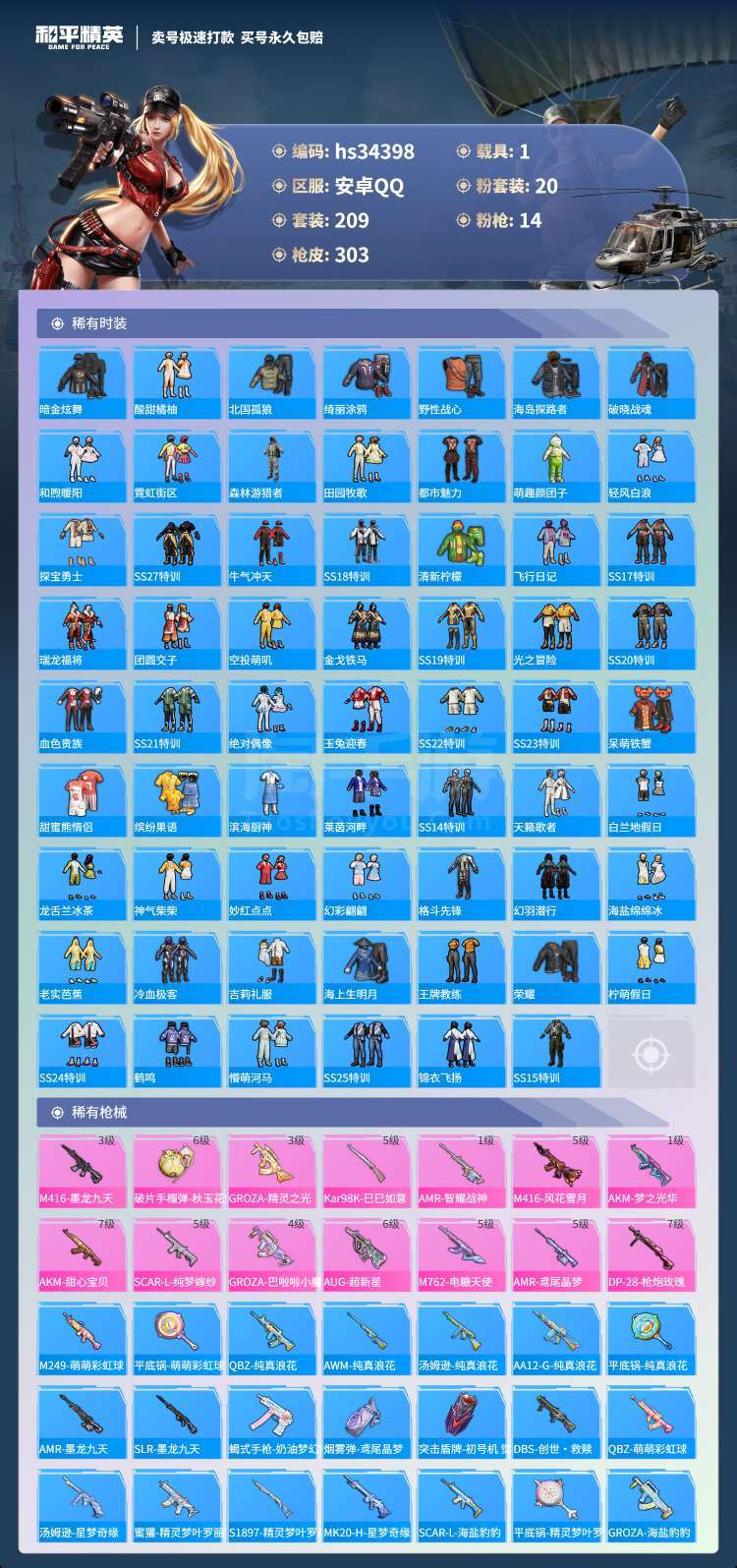 安卓手Q-16王牌印记-20粉装-14特效枪-1载具-107480热力值-209套装