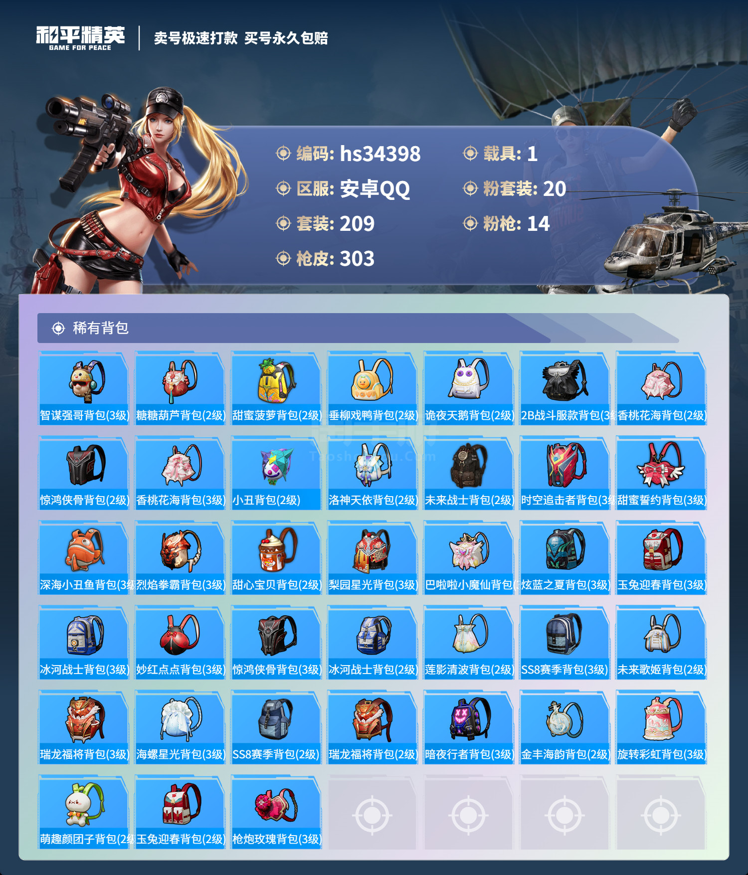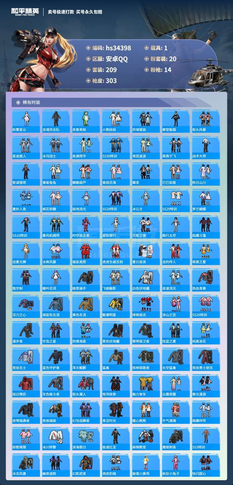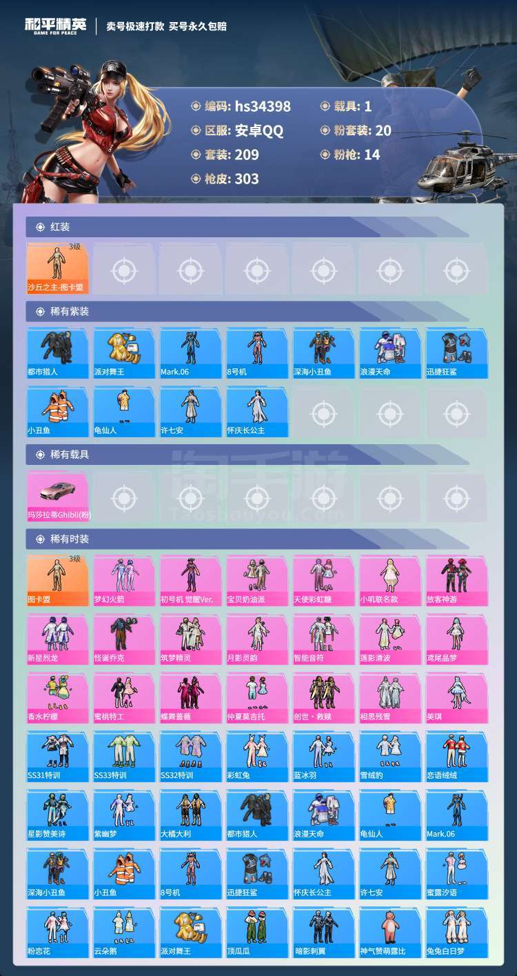 安卓手Q-16王牌印记-20粉装-14特效枪-1载具-107480热力值-209套装