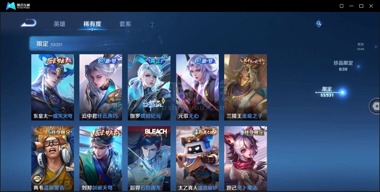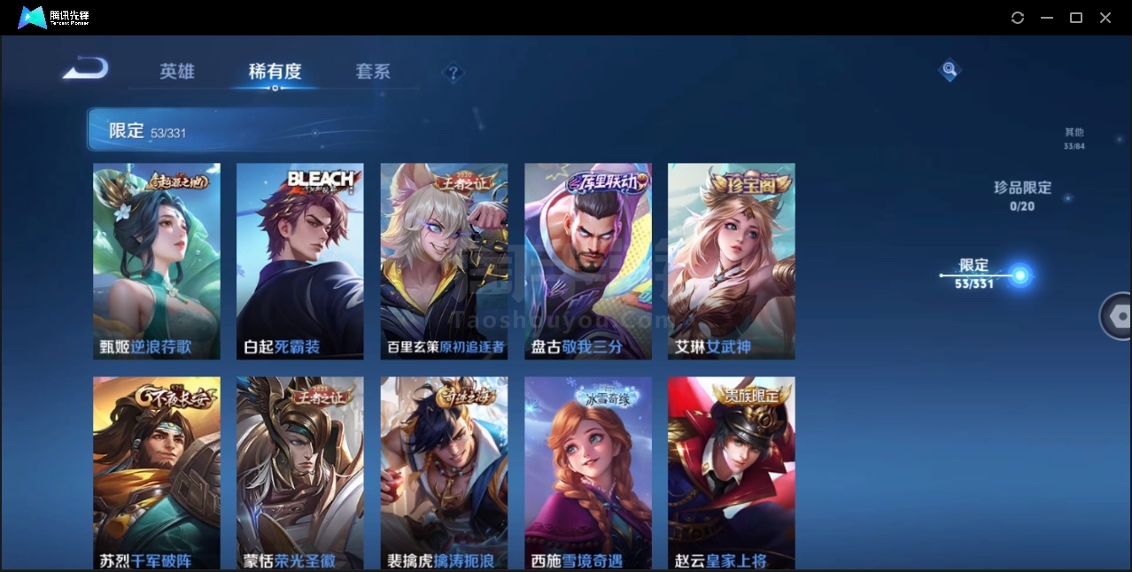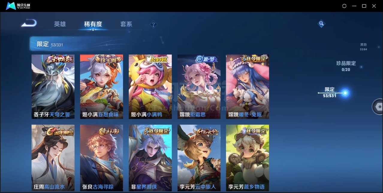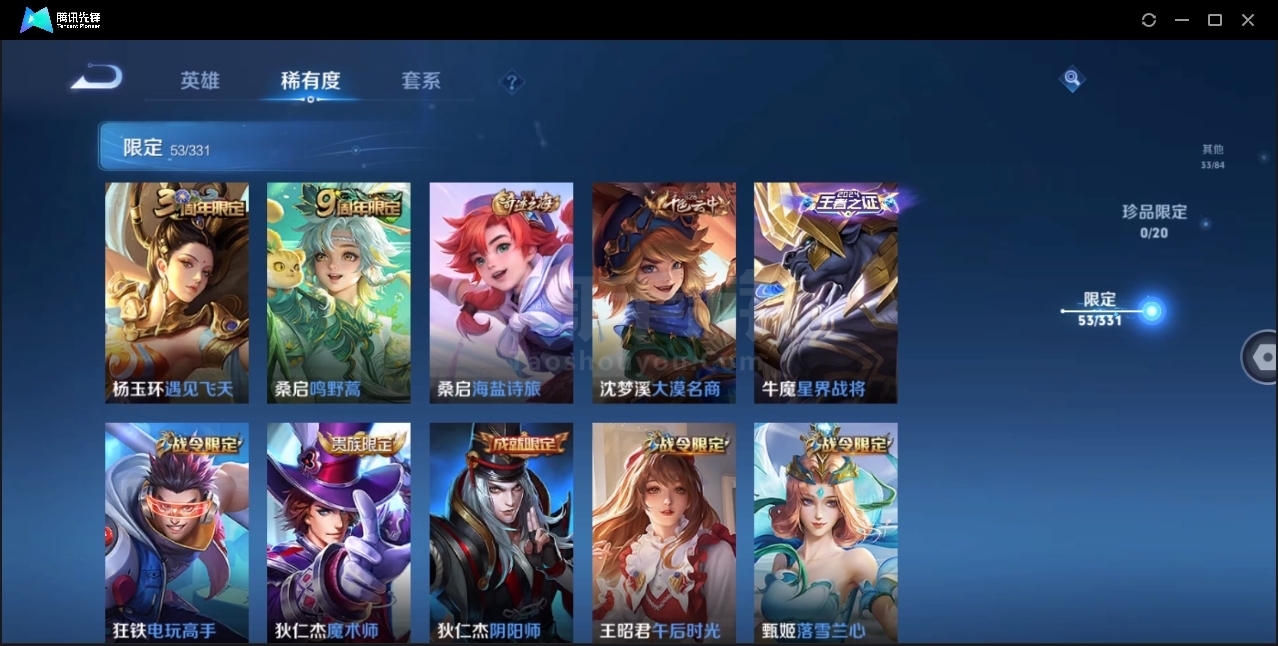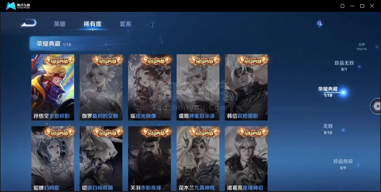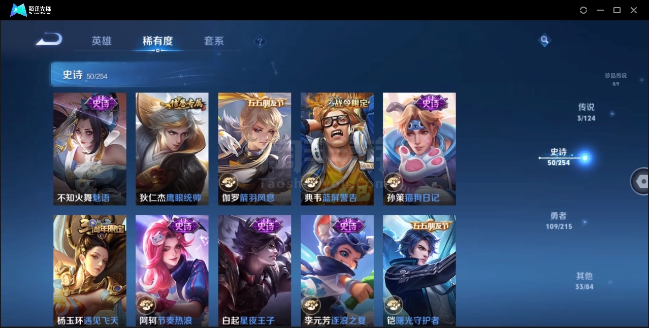 可二次-贵6-122英雄-196皮肤-1典藏-3传说