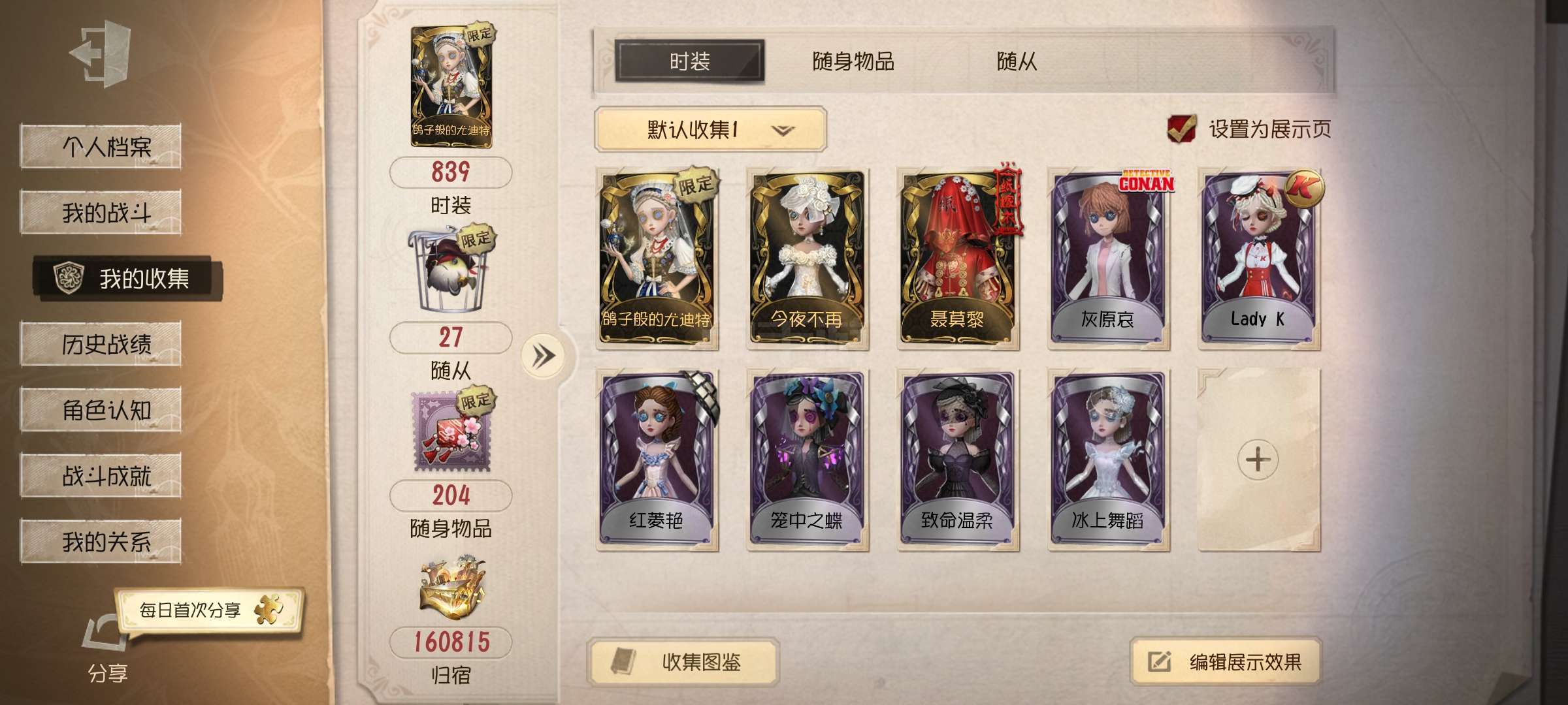 第五人格【安卓小米】鸽子180头,调香师大情 古董双限大情 多皮肤有配套挂件,精装满家具山庄,号里还有1850回声