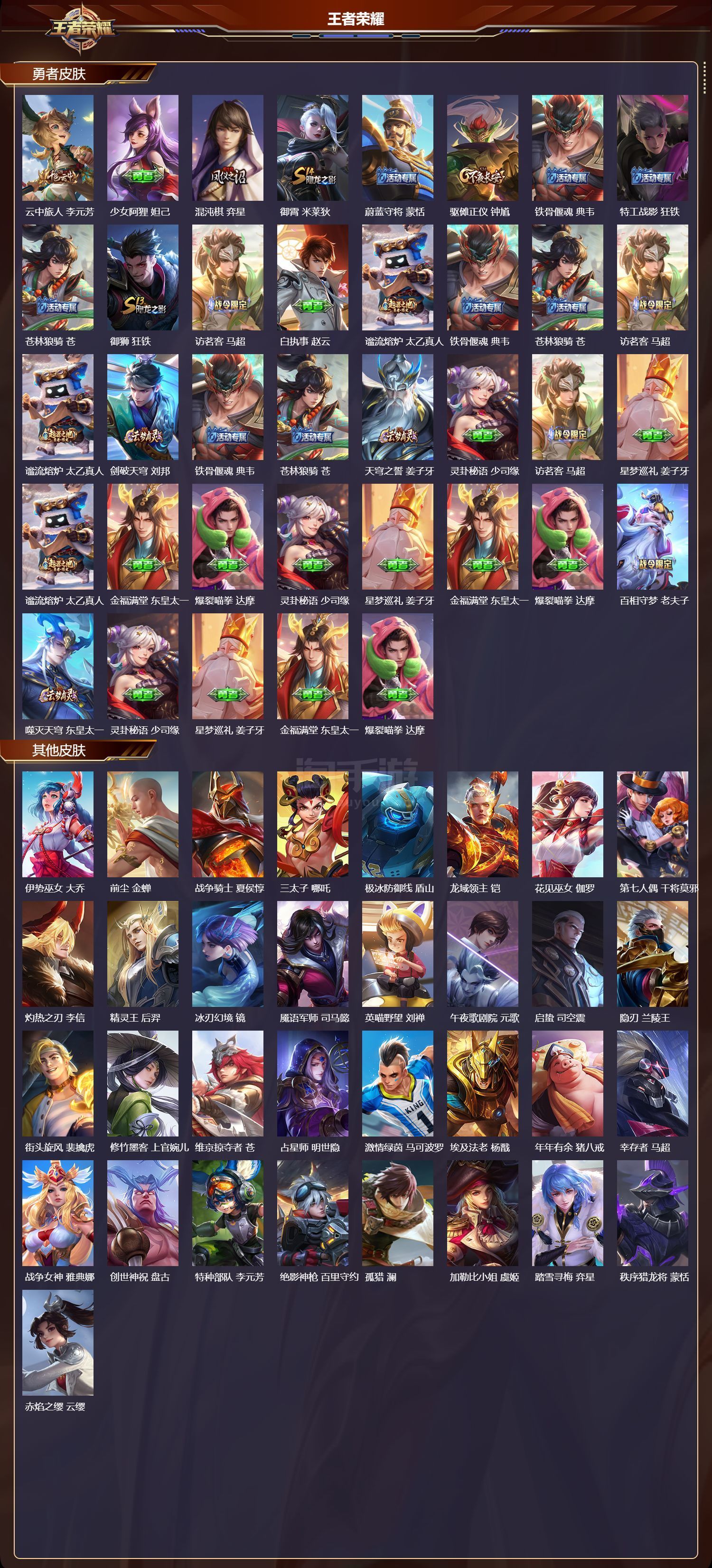 hswz4297苹果QQ/ 212皮肤/ 122英雄 V9 【8 稀有英雄】嬴政,不知火舞,橘右京,