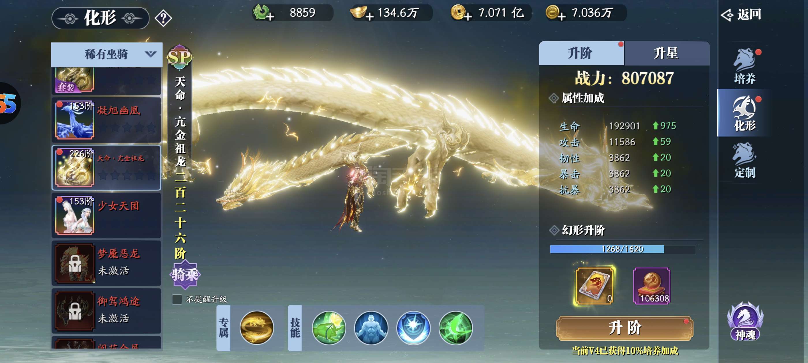 高战力新区榜,至尊19,定制龙坐骑,sP坐骑,sp十成灵,各种终身卡已开,灵玉包里几百万随便强化装备