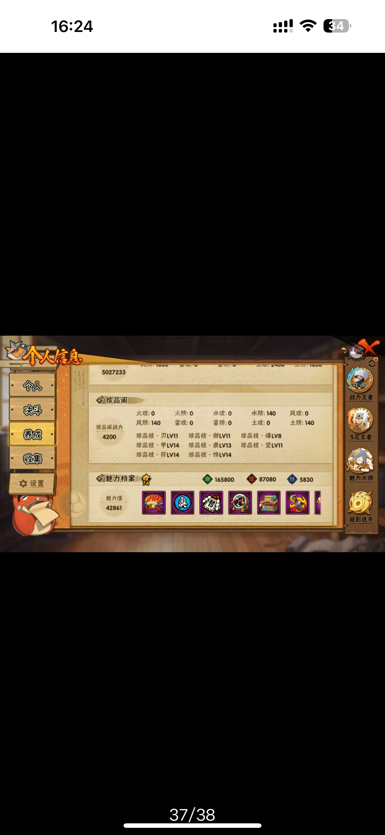 苹果微信 5718w战力 充值百万持续更新 战斗力57180512 VIP等级15 S忍全忍者 A忍全忍者 暗部 前1000名 S级忍者九喇嘛连结-漩涡鸣人 A级忍者仙人模式-漩涡鸣人 传说时装钢铁之躯-迈特凯 通灵忍犬