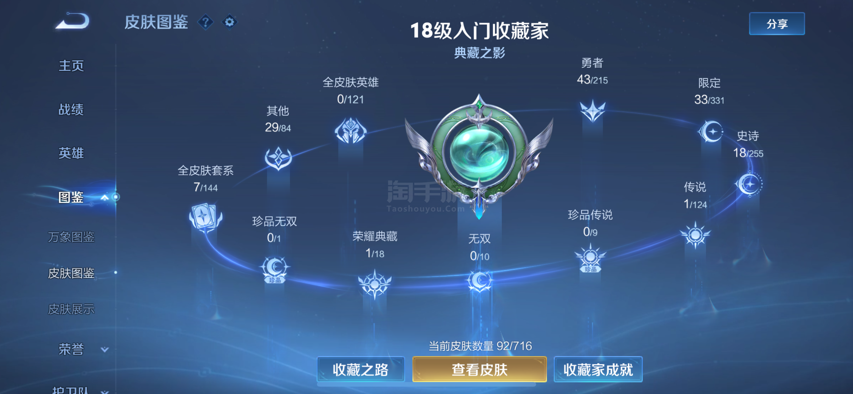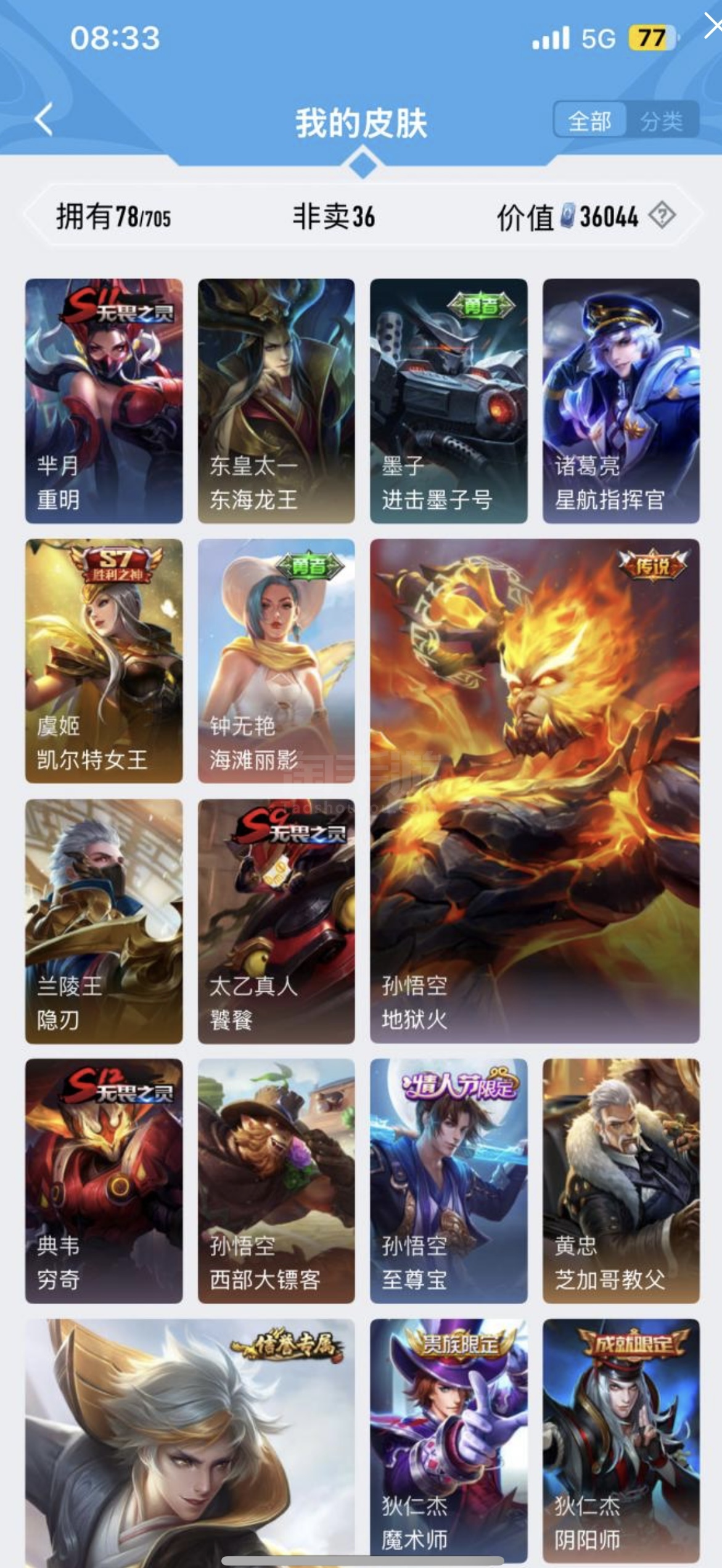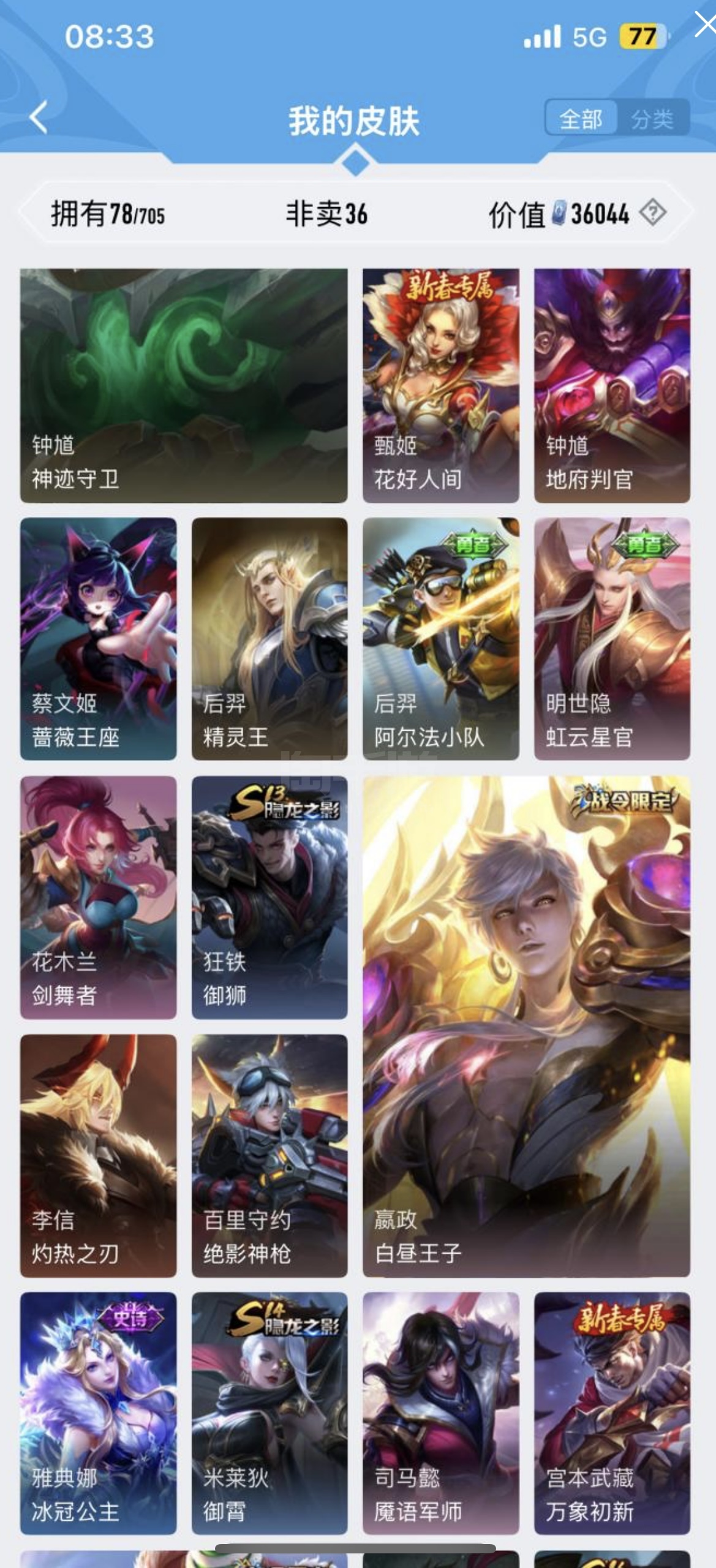 有一个至尊宝和一个虞姬的荣耀典藏,还有一大堆其他的皮肤