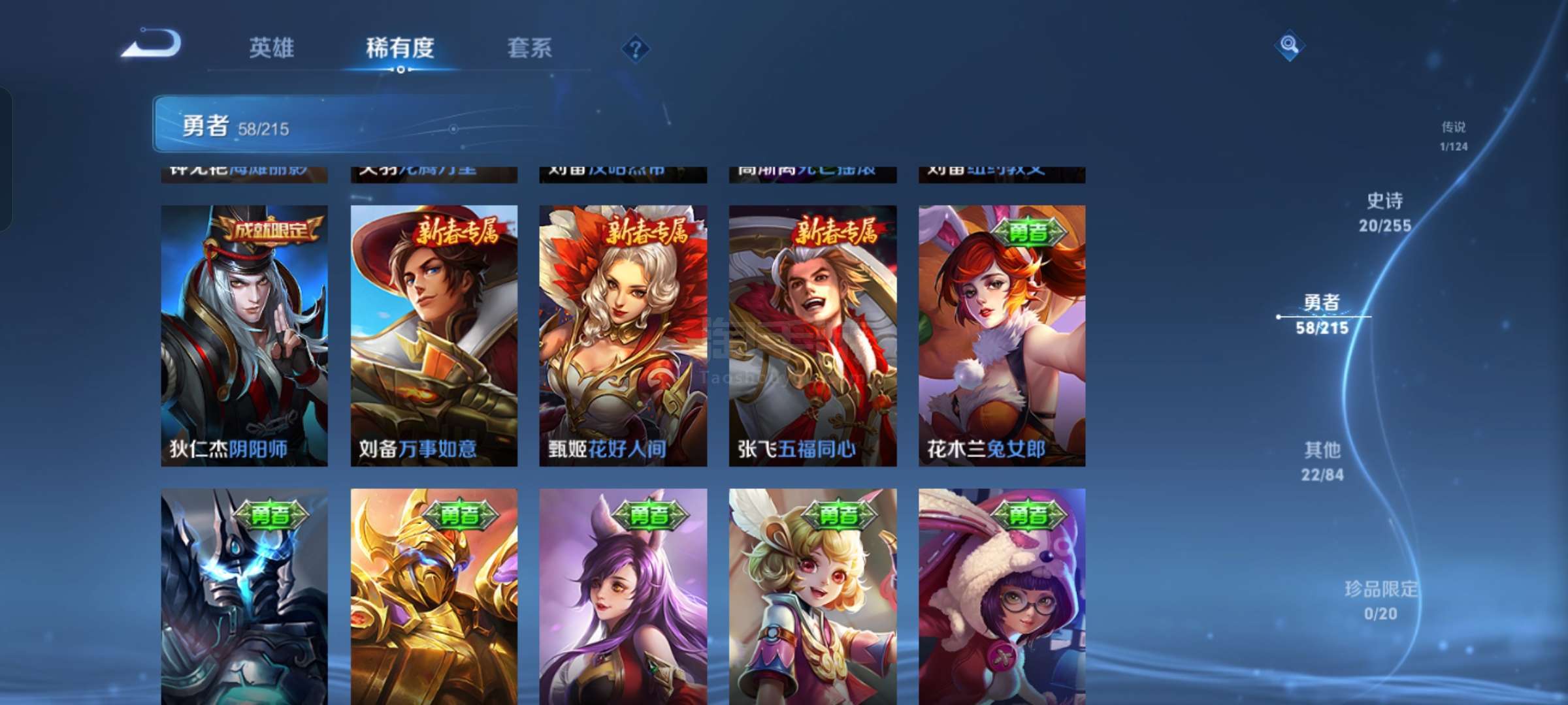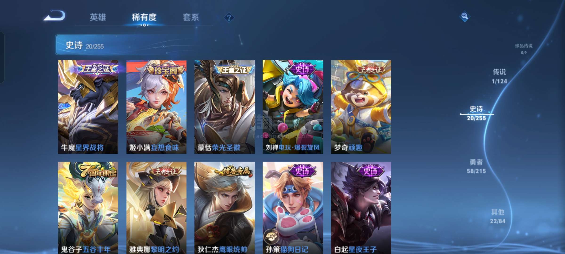 上过荣耀,王者之争皮肤都有,玄策差一个