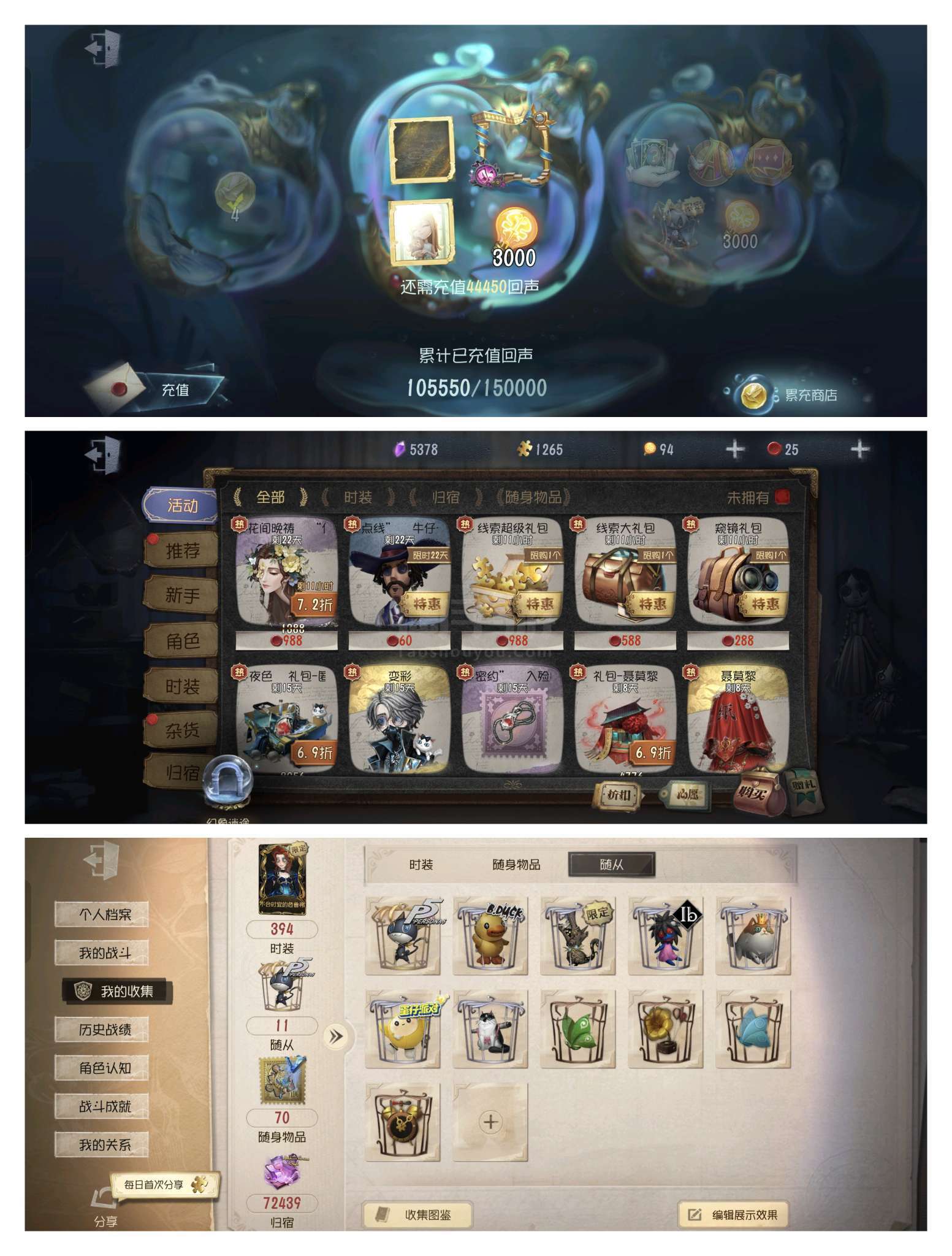 第五人格 安卓OPPo 这个价格已经自降很多,电竞小队全套,多个绝版限定金,夏日金皮全套,一个绝美情号,弓箭手一限不合时宜的
