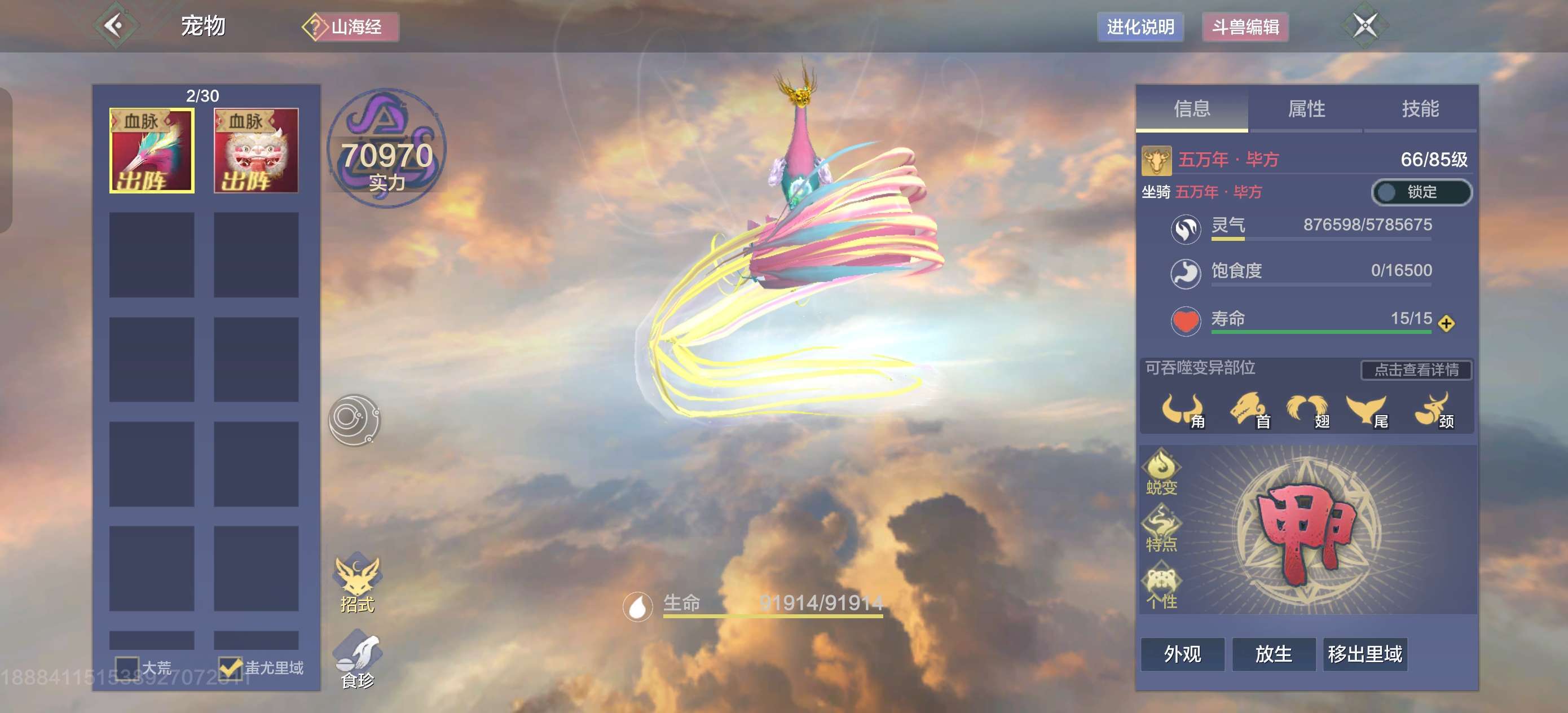 妄想山海【安卓QQ】神兽狌狌,12w战力,带6个五万年