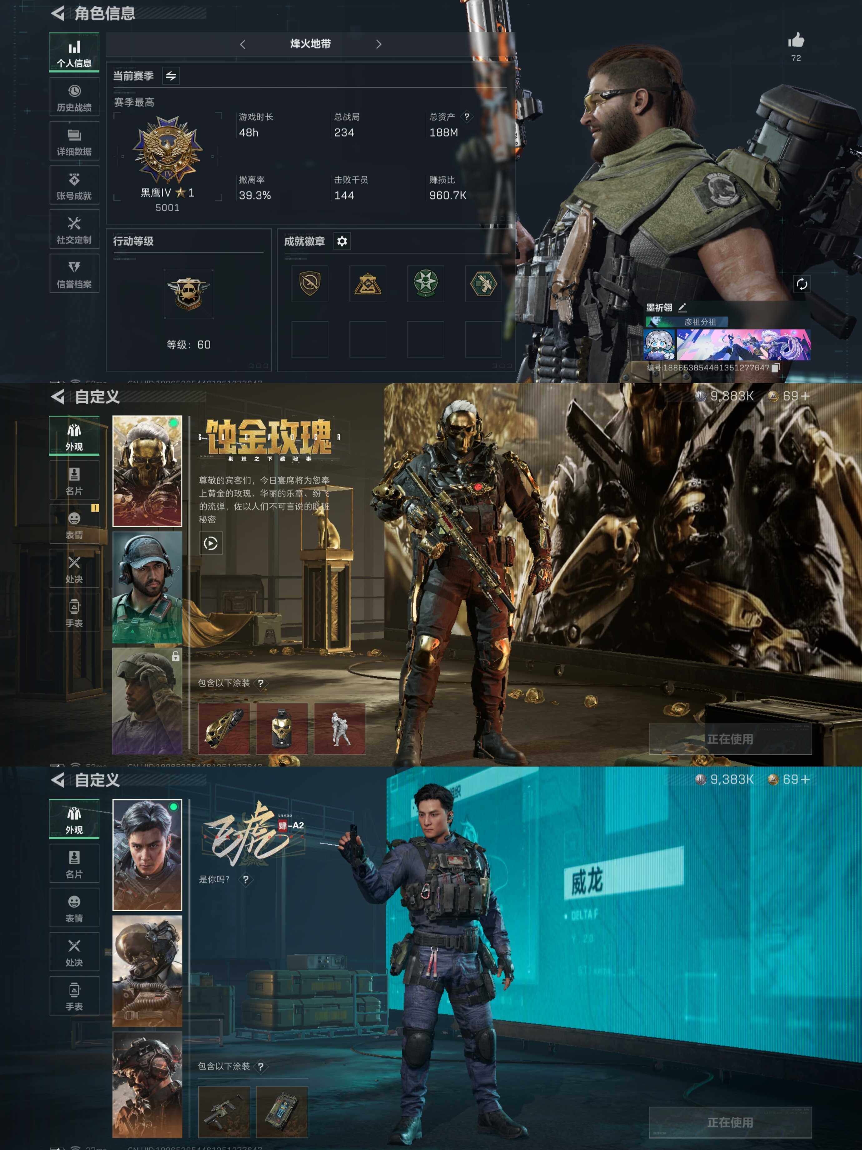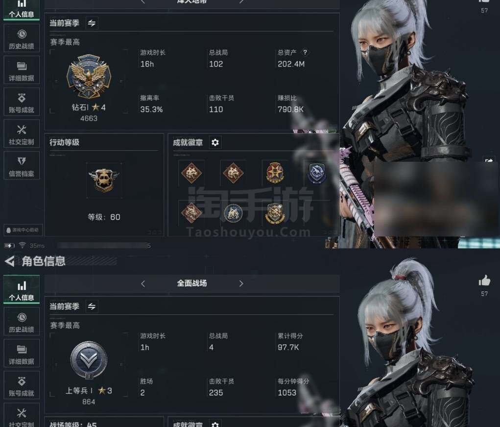 三角洲行动【苹果QQ】【个人信息】战场等级:45 上等兵,行动等级:60 钻石