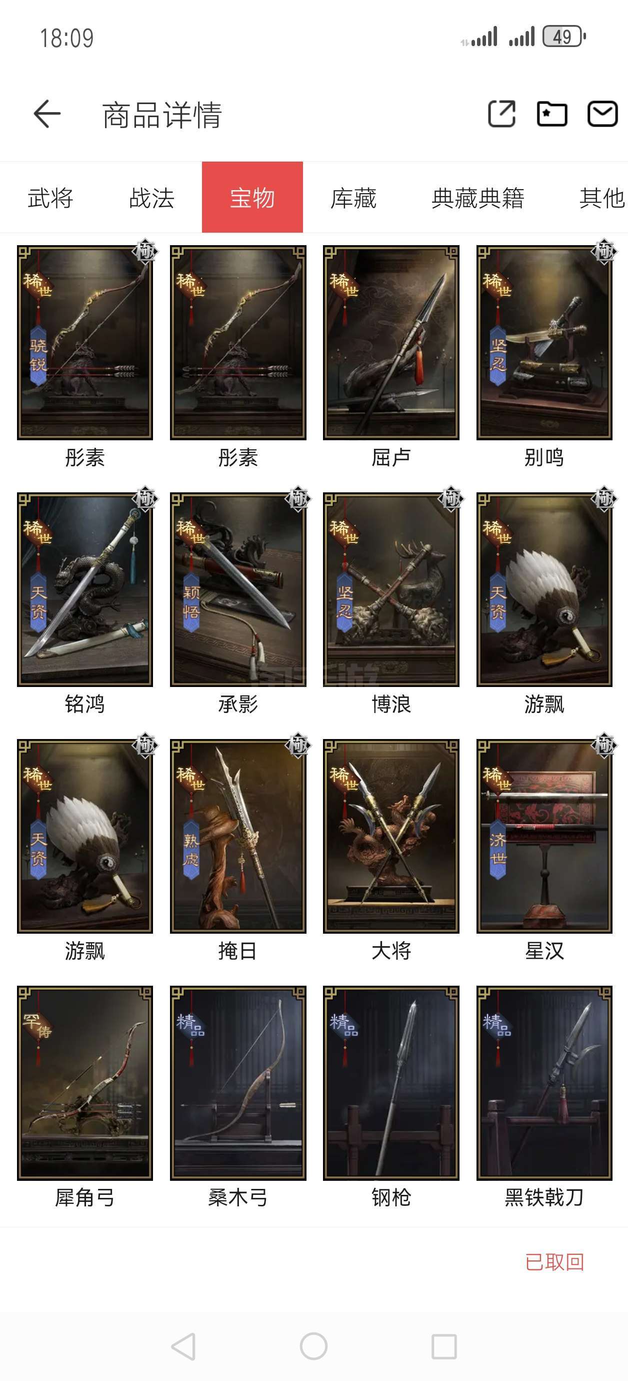 试师号 72张五星武将卡 23个S级战法 12个稀世宝物