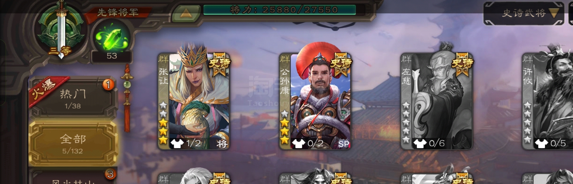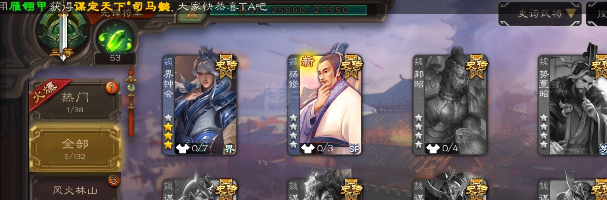 5万6豆,界钟会金皮张让神吕布公孙康杨修5史诗先锋,神吕蒙势陈到贾充134将