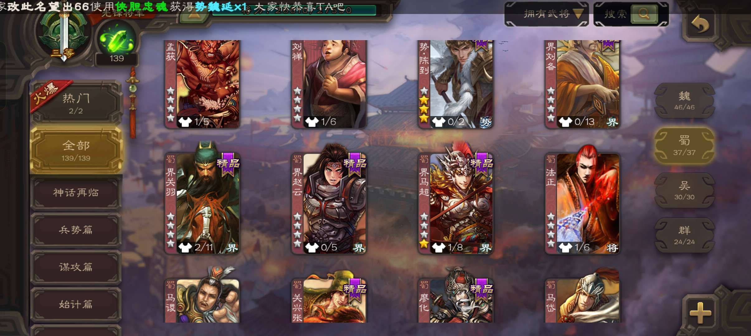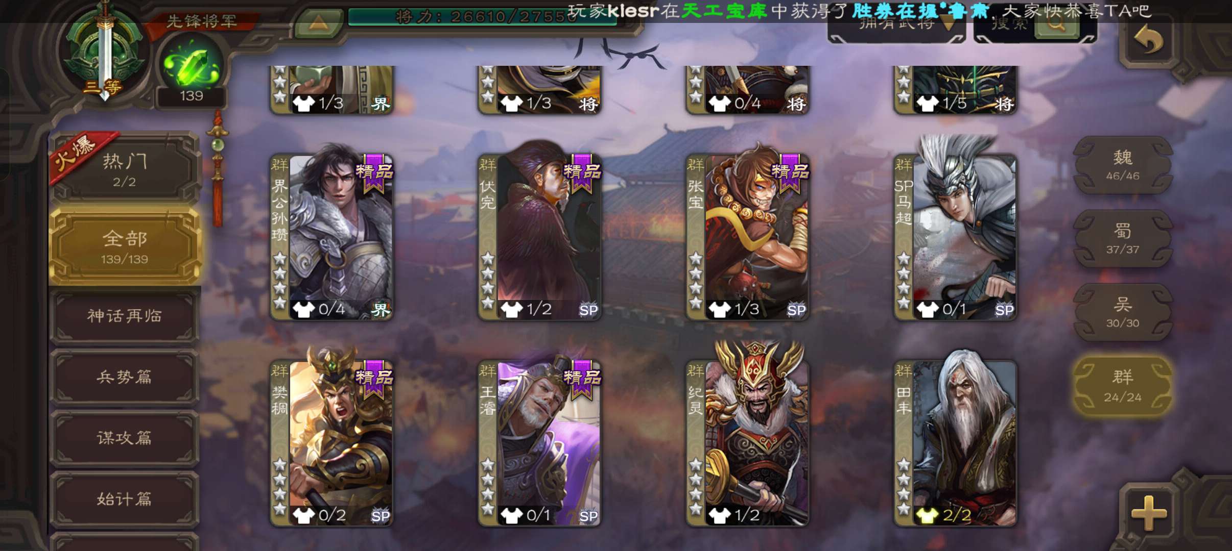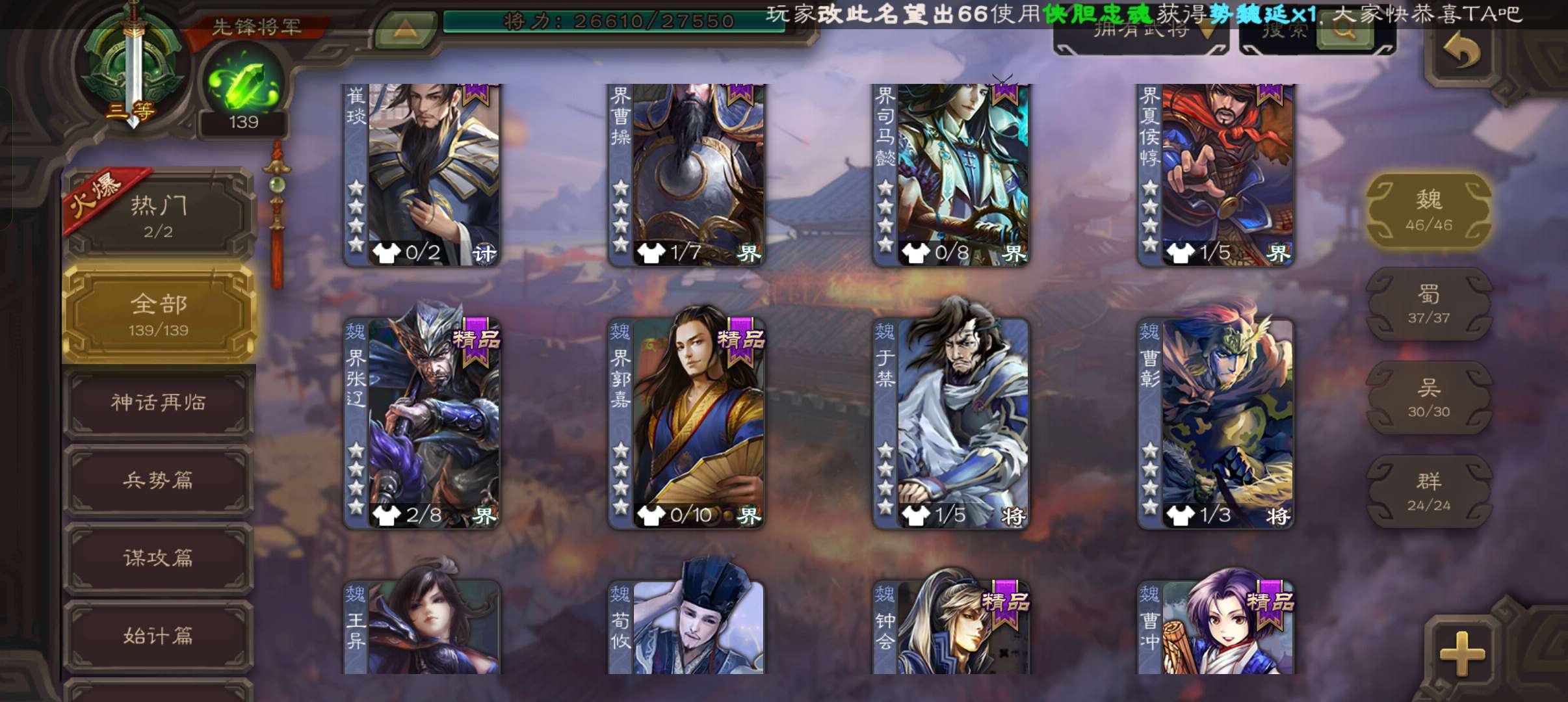 3史诗双神先锋,乌鸦动态界钟会郝昭杨修,神周瑜神吕蒙势陈到谋小乔桥公甘夫人崔琰139将