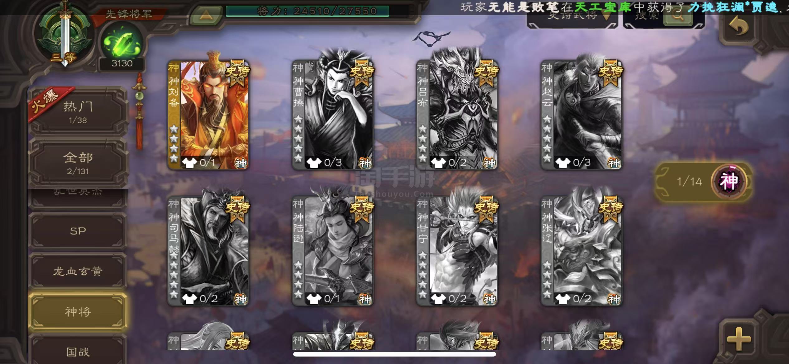 三国杀【安卓官方】先锋动戏子神刘备三卡3000将魂