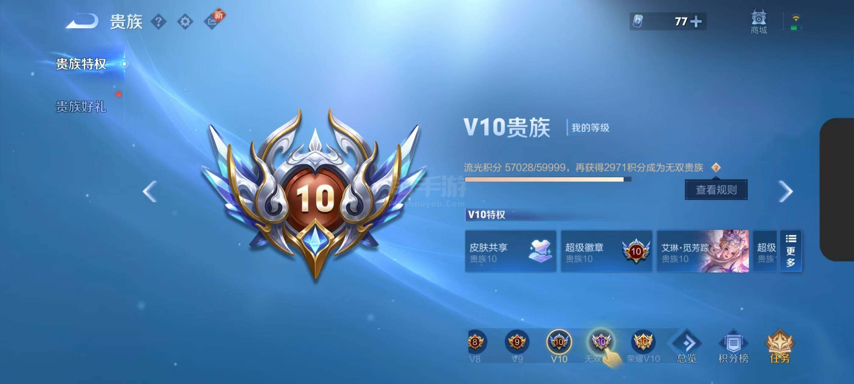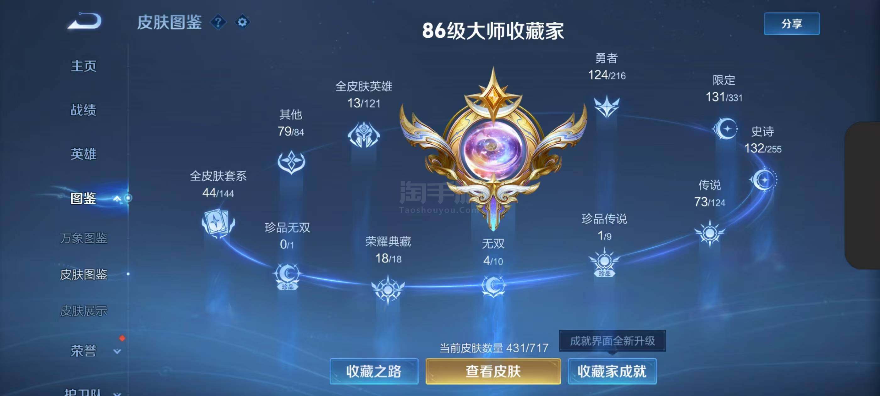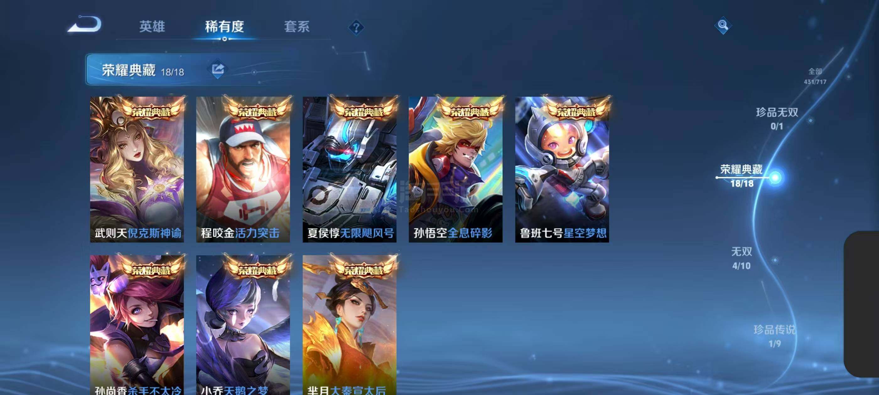 满典藏号V10-永恒钻石IV段位-125英雄-431皮肤-20典